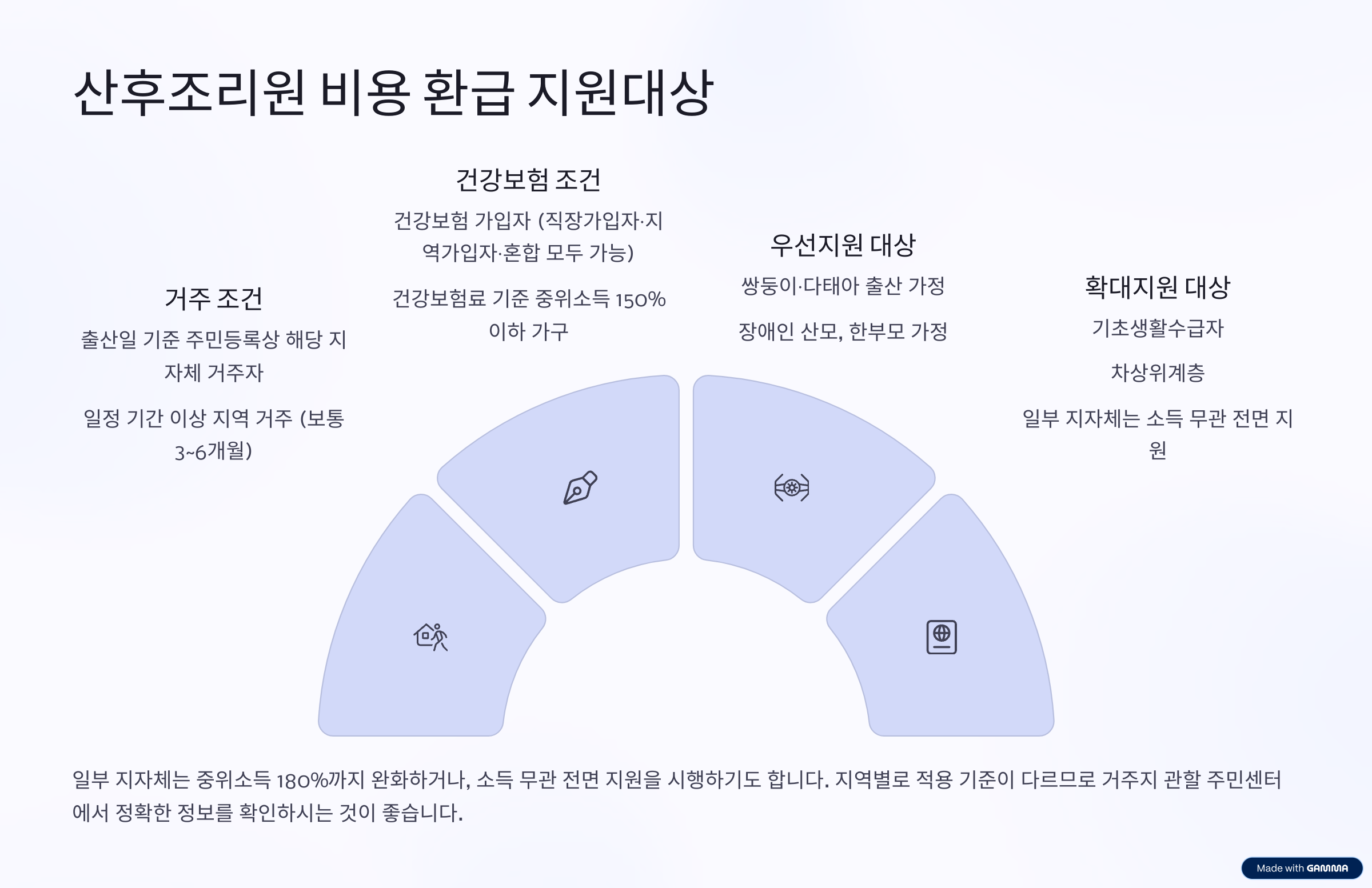 - 기초생활수급자·차상위계층·한부모가정·장애인 산모는 별도 확대지원