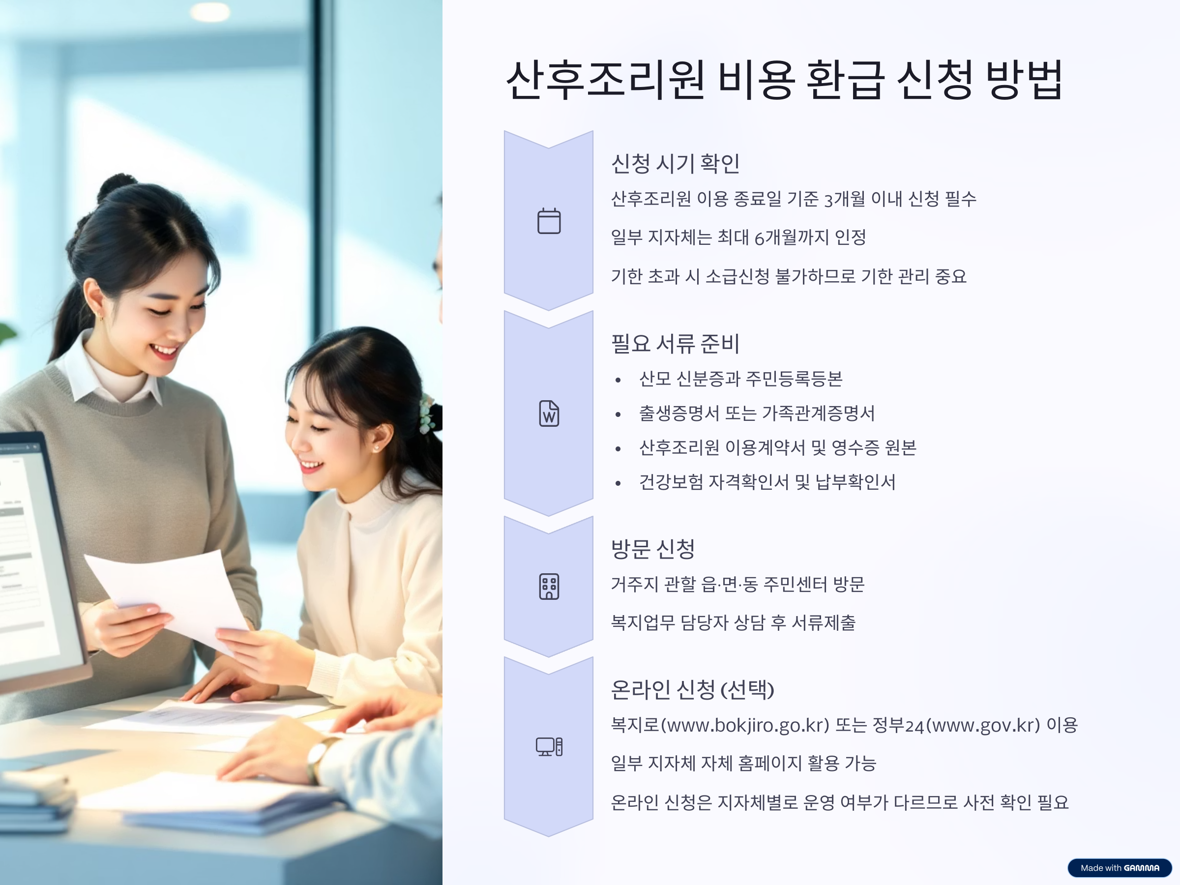 산후조리원 비용 환급 신청 시 준비해야 할 서류 목록입니다.
