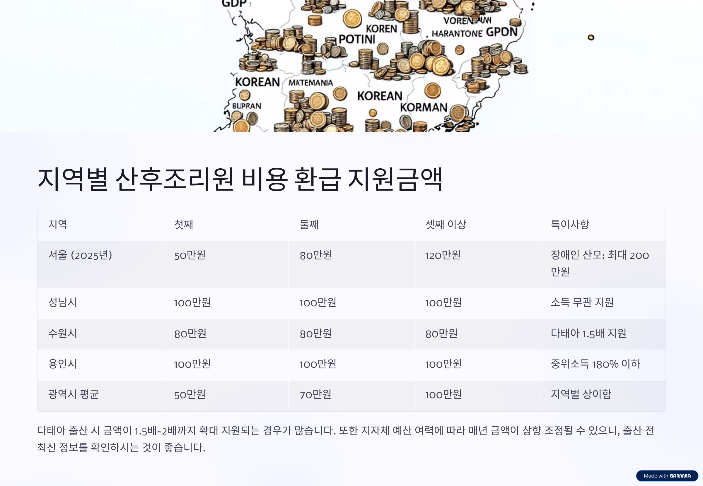 - 다태아 출산 시 금액 1.5배~2배까지 확대 지원