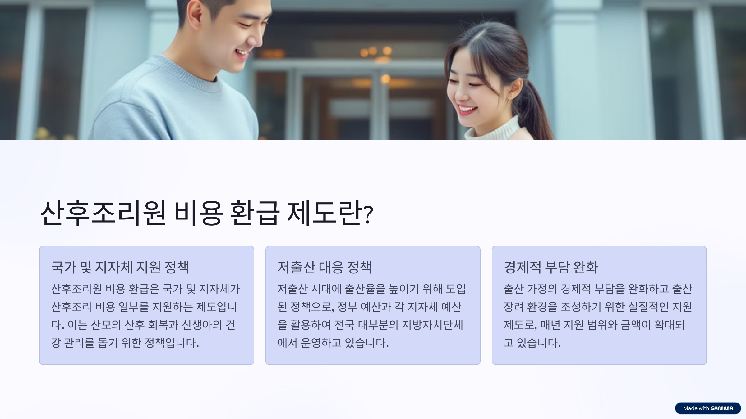 - 산모 회복과 신생아 케어의 전문적 관리 지원
