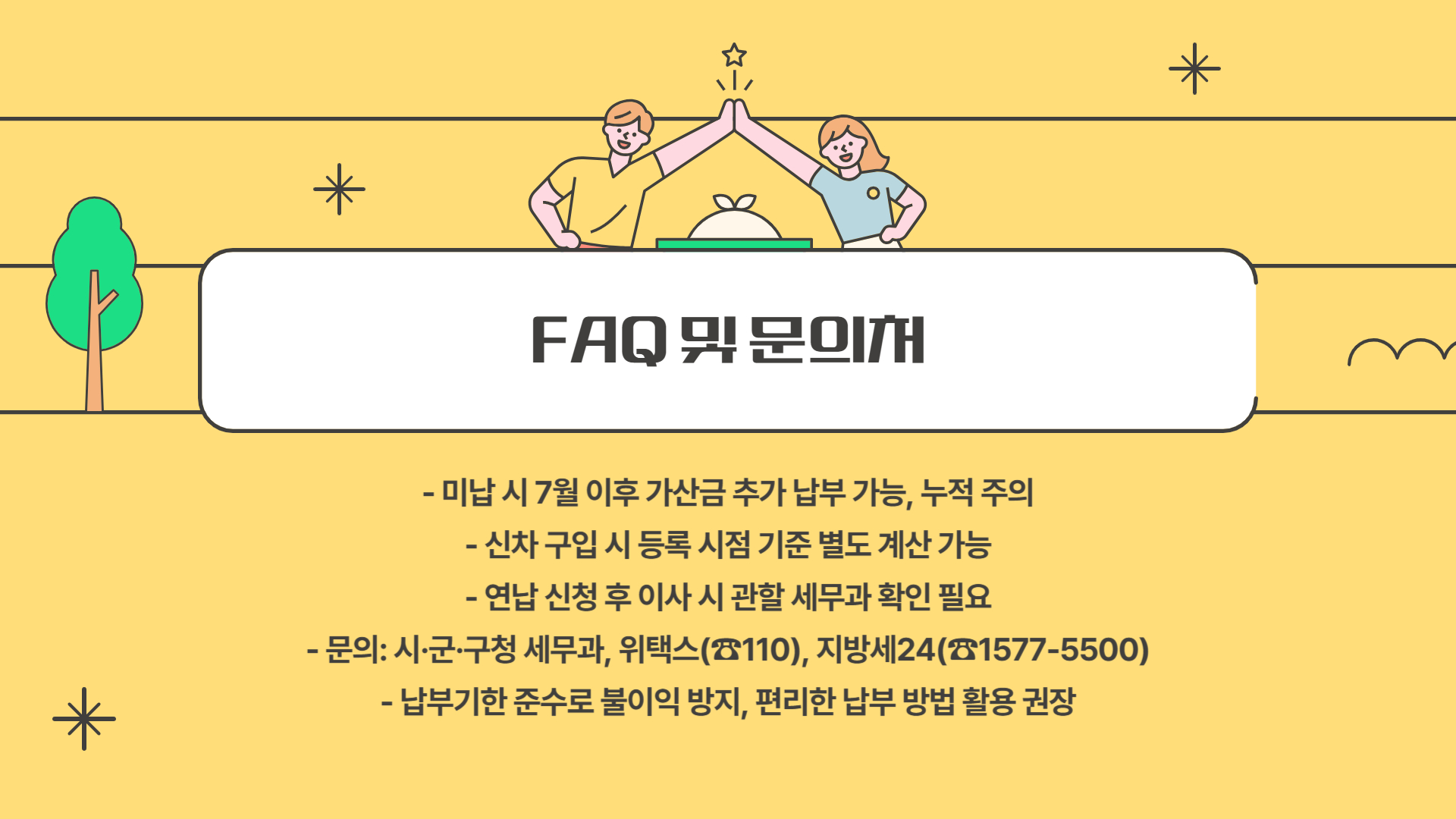 - 납부 후 납부확인증 필수 보관 (위택스·지방세 24에서 출력 가능)