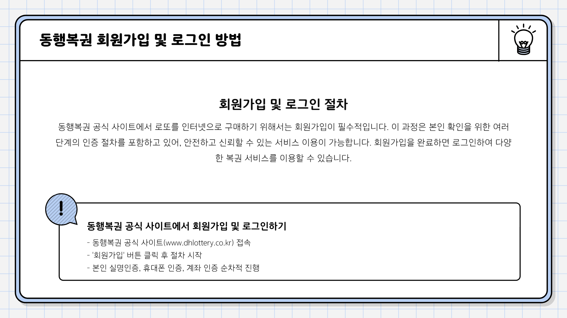 요즘 바쁜 현대인들 사이에서 복권 판매점을 직접 방문하지 않고 로또 인터넷 구매방법을 찾는 분들이 많습니다. 특히 동행복권 사이트 온라인 구매법을 정확히 알아두면 시간 절약은 물론이고, 당첨금 관리까지 간편하게 할 수 있습니다.