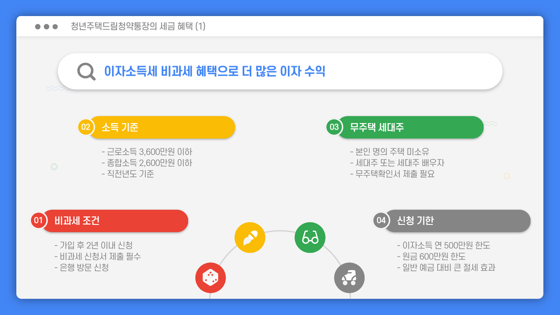 • 세금 감면 (이자소득세 비과세 + 소득공제)