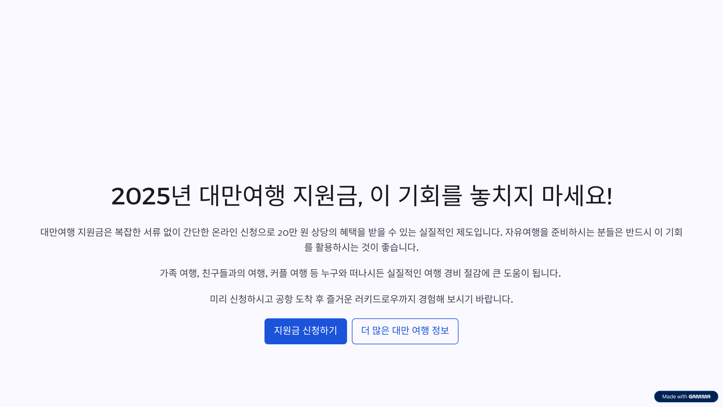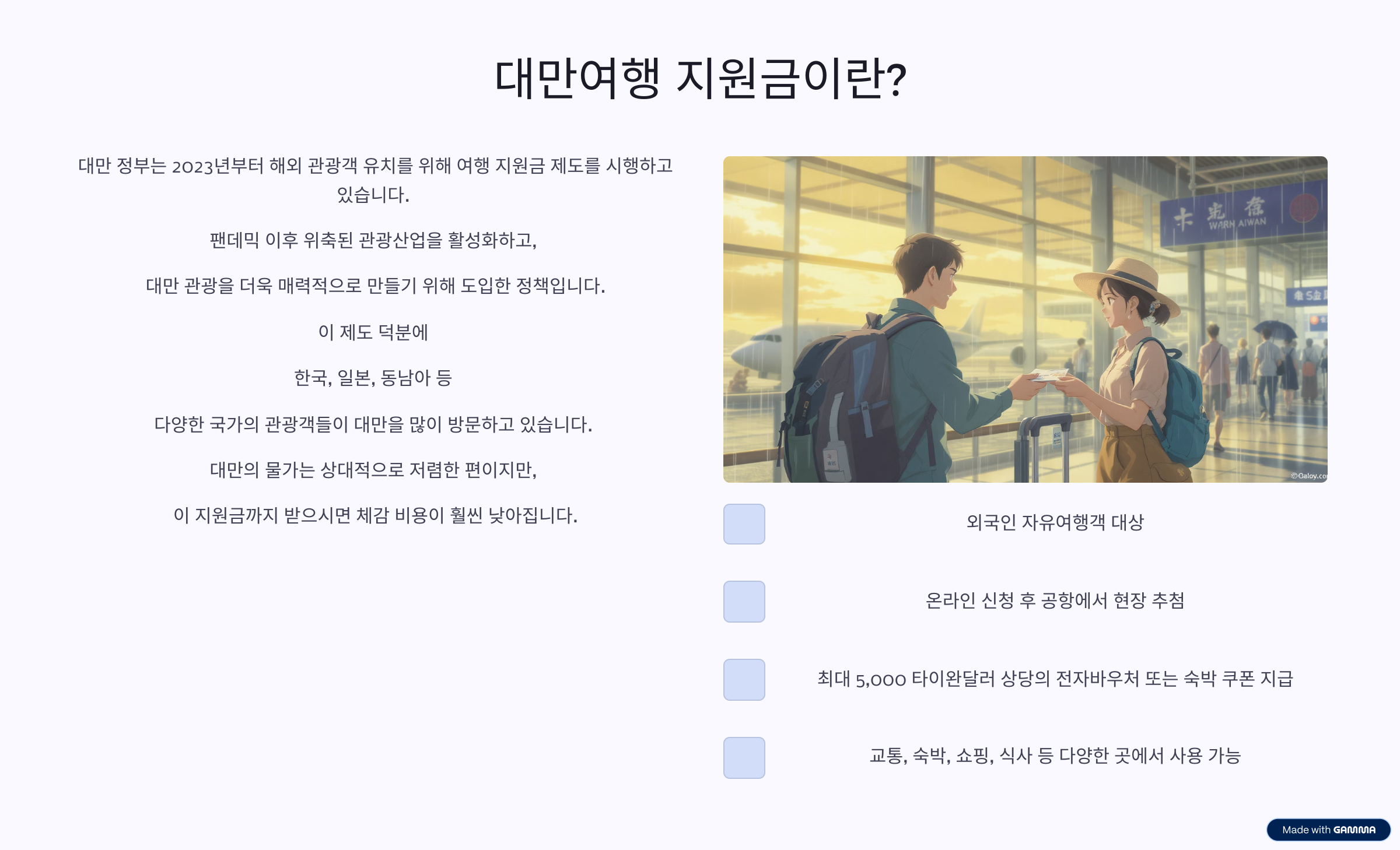 대만여행 지원금의 핵심 내용은 다음과 같습니다.