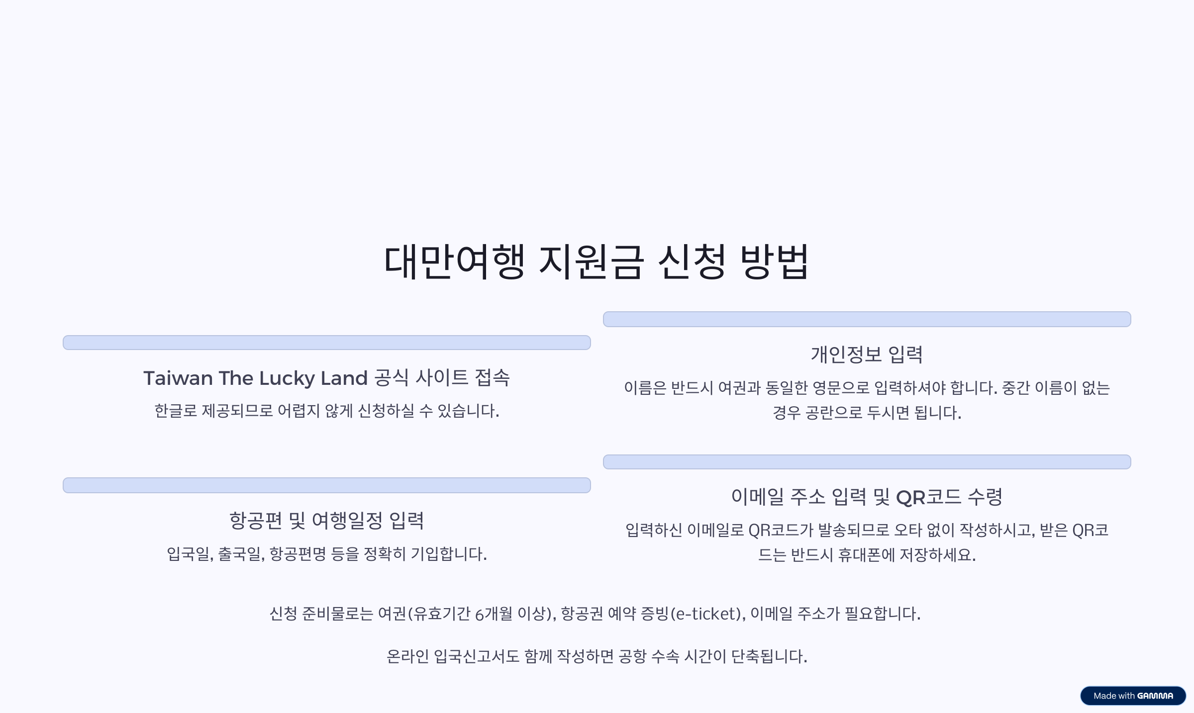 2025년 대만여행 지원금, 이 기회를 꼭 잡으시기 바랍니다. 대만여행 지원금은 복잡한 서류 없이 간단한 온라인 신청으로 20만 원 상당의 혜택을 받을 수 있는 실질적인 제도입니다. 자유여행을 준비하시는 분들은 반드시 이 기회를 활용하시는 것이 좋습니다. 가족 여행, 친구들과의 여행, 커플 여행 등 누구와 떠나시든 실질적인 여행 경비 절감에 큰 도움이 됩니다. 미리 신청하시고 공항 도착 후 즐거운 러키드로우까지 경험해 보시기 바랍니다.