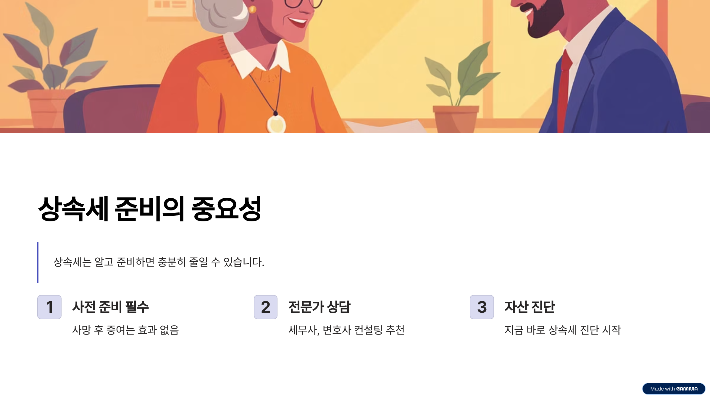 상속세는 신고기간이 짧고 절세 전략은 생전 준비가 핵심이기 때문에 사전 상담이 무엇보다 중요합니다.