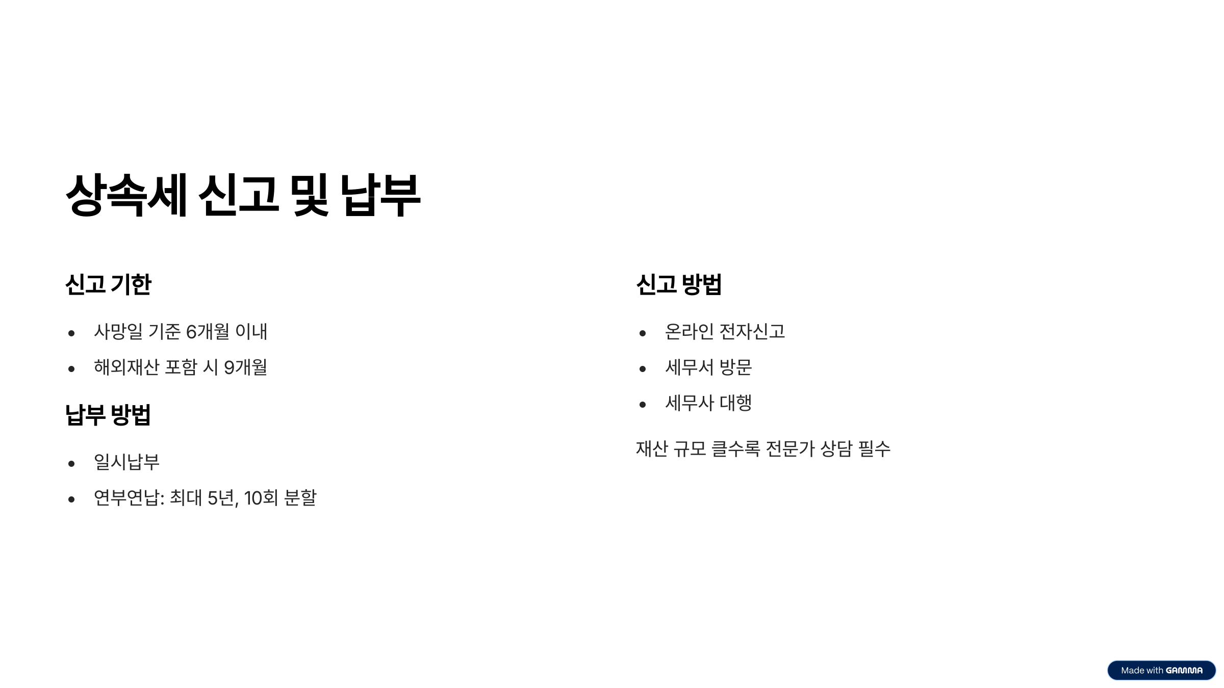 • 세금 부담이 클 경우 연부연납 제도 이용 가능