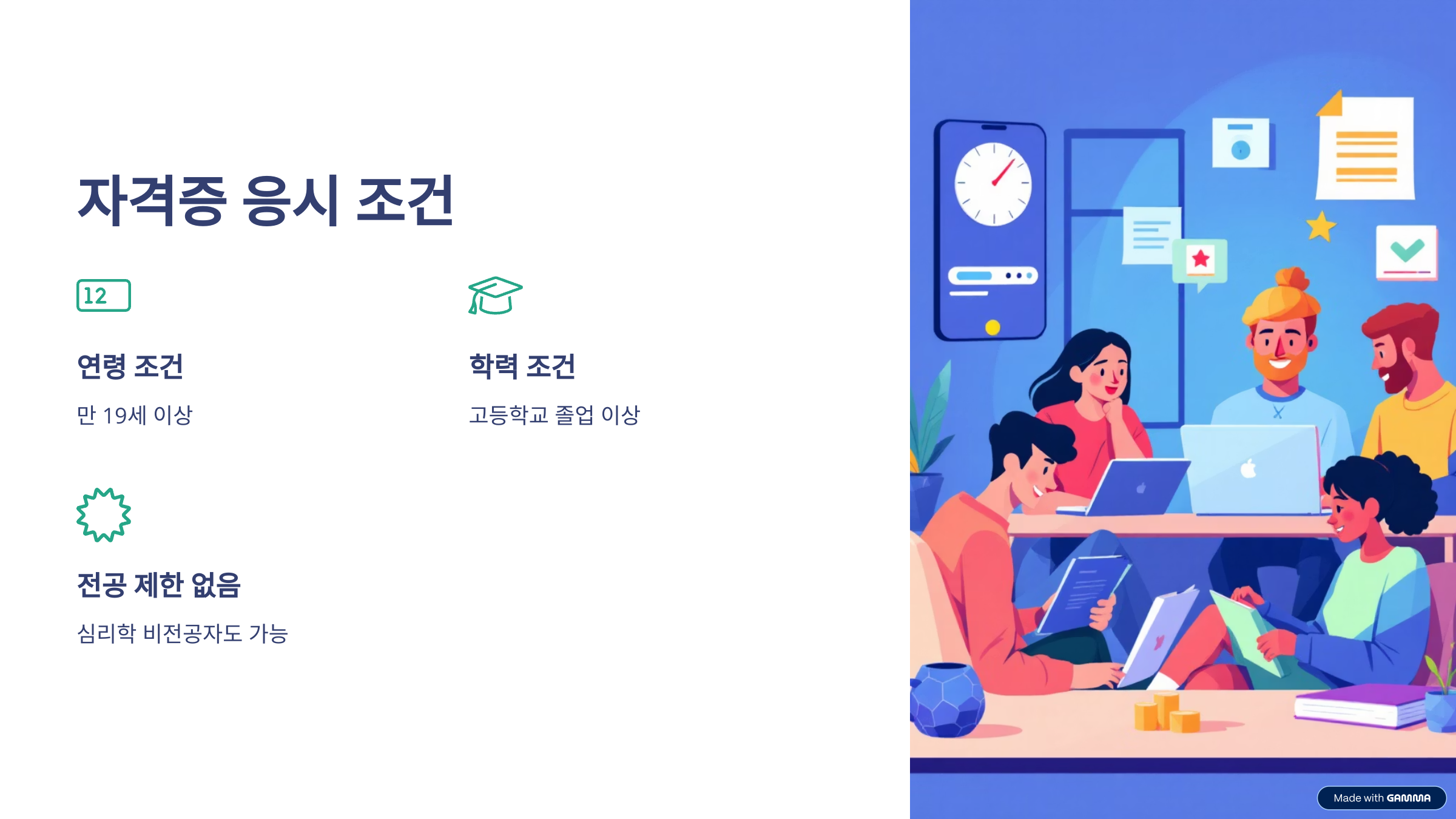 스포츠심리상담사 자격증은 누구나 도전할 수 있다는 점이 가장 큰 장점입니다. 응시자격은 두 가지로, 만 19세 이상이면서 고등학교 졸업 이상의 학력만 갖추면 됩니다. 심리학 전공자만 응시할 수 있는 것은 아니라서, 비전공자나 경력이 없는 분들도 시작하기 수월합니다. 저 역시 심리학 배경이 전혀 없었지만 강의와 자료가 쉽게 구성되어 있어 부담 없이 공부할 수 있었습니다. 오히려 이론보다는 실전 적용 중심으로 구성되어 있어서 학습 흥미도 유지하기 좋았습니다.