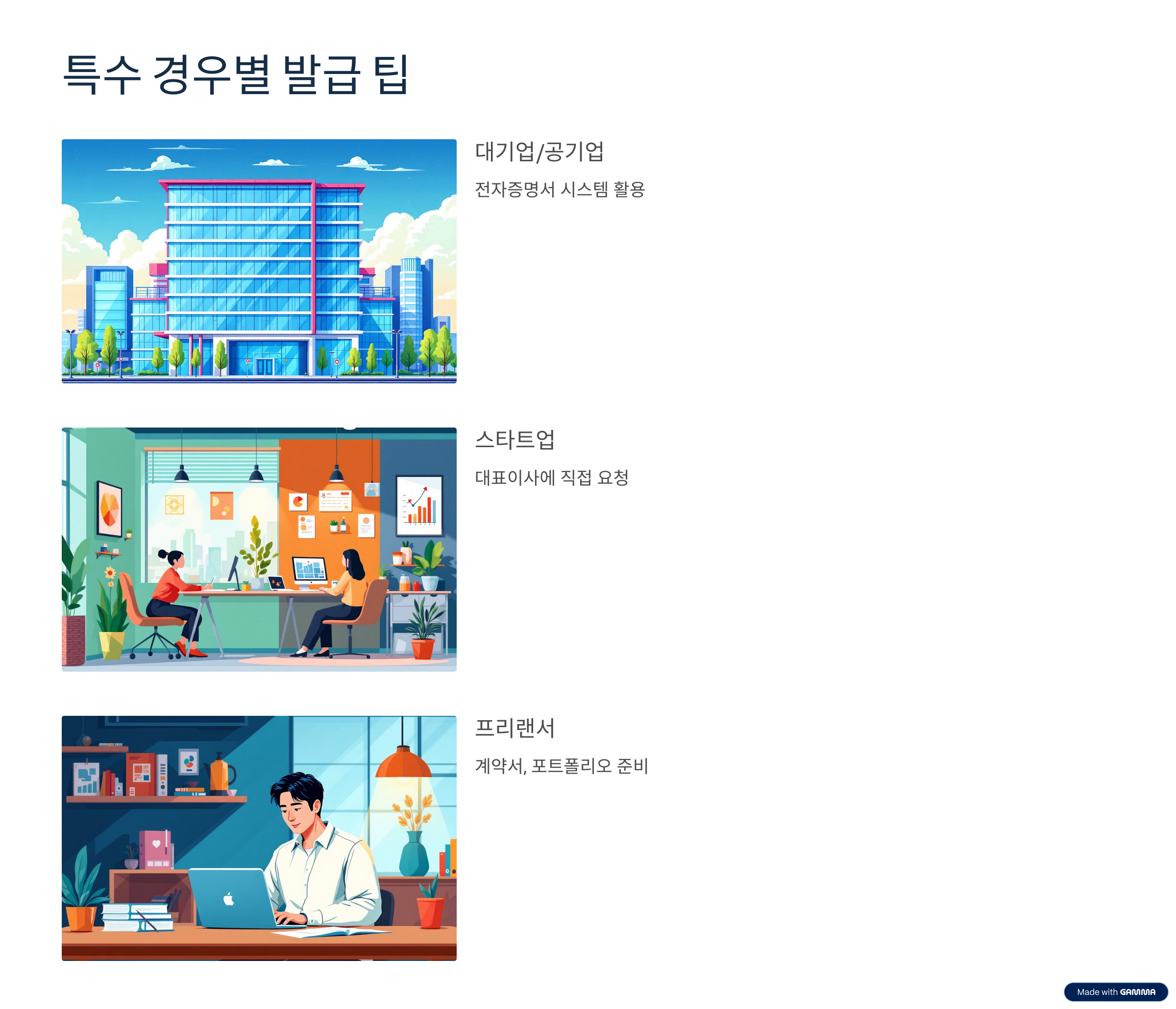 직장 형태에 따라 경력증명서 인터넷발급 방식도 조금씩 차이가 있습니다. 대기업이나 공기업의 경우 대부분 전자 증명서 시스템이 잘 갖춰져 있어서 이직 준비 과정에서 큰 어려움이 없습니다. 중소기업이나 스타트업은 담당 인사팀이 없는 경우가 많아 대표이사나 경영지원팀에 직접 요청하는 편이 빠릅니다. 프리랜서와 계약직 근로자는 계약서 사본, 업무 증빙 자료, 포트폴리오, 추천서 등을 함께 준비하면 경력 증빙 자료로 유용합니다.