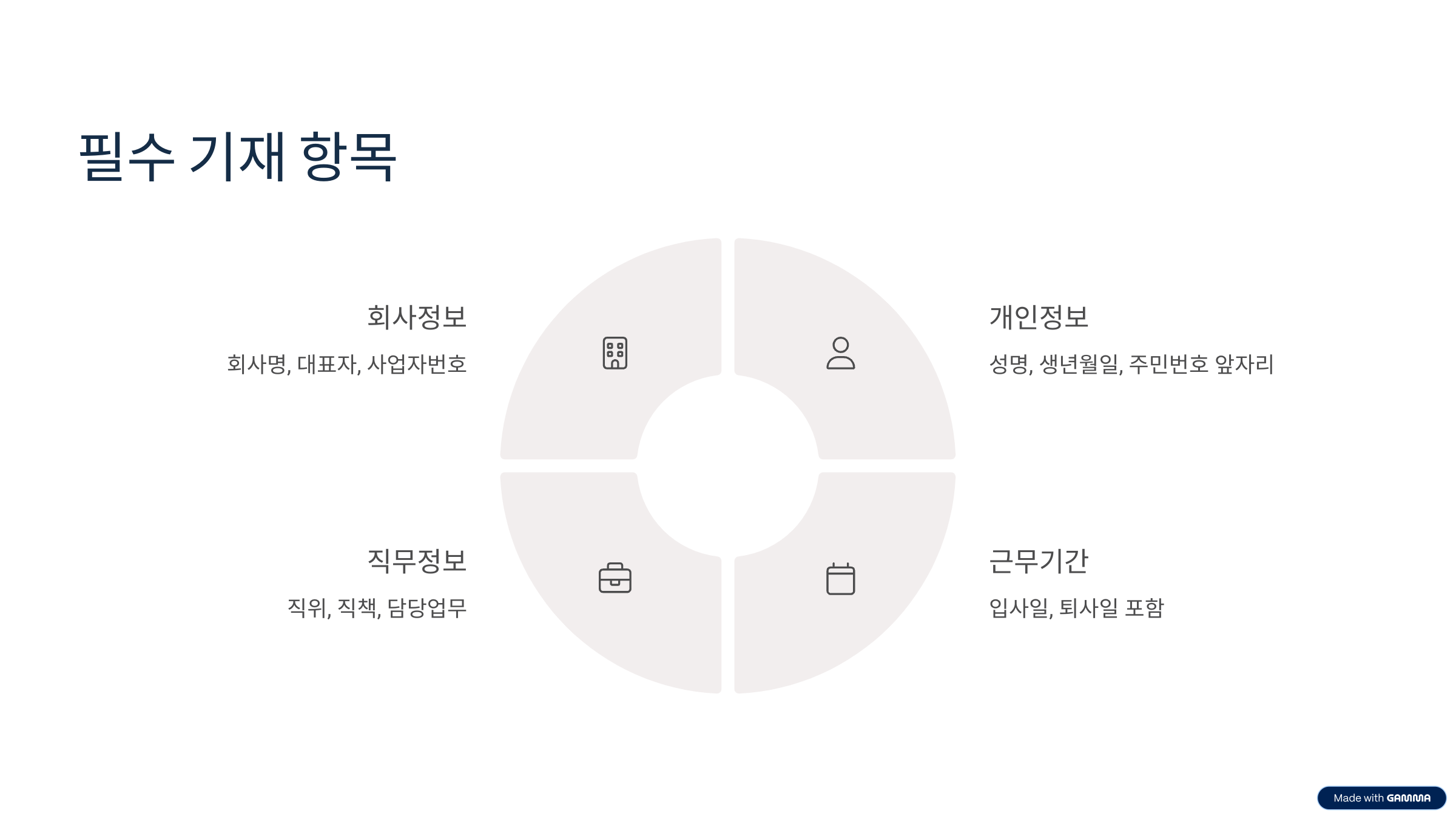 경력증명서 인터넷발급을 요청할 때 양식도 중요한 요소입니다. 경력증명서는 법적으로 정해진 표준 양식이 없지만, 필수 기재 항목을 누락하면 인정받지 못할 수도 있습니다. 기본적으로 포함해야 하는 항목은 다음과 같습니다.