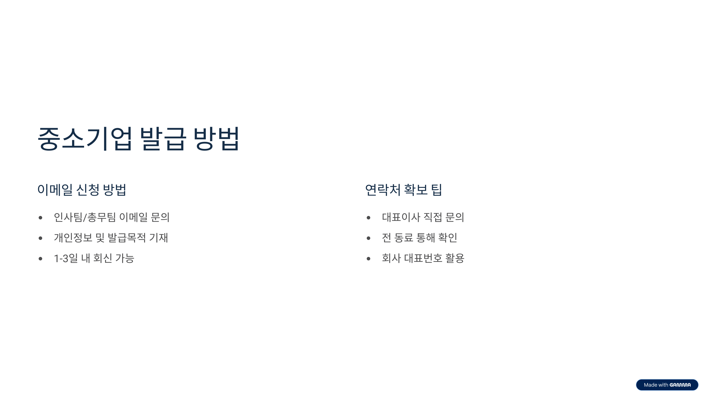 중소기업이나 스타트업처럼 인트라넷 시스템이 없는 회사에서는 이메일을 통해 발급 신청을 하는 것이 일반적입니다. 이 경우 인사팀이나 총무팀에 이메일을 보내 이름, 생년월일, 입사일, 퇴사일, 부서명, 직위, 발급 목적 등을 기재해 요청하면 됩니다. 보통 1~3일 이내로 회신을 받을 수 있습니다. 담당자가 없다면 대표이사나 경영지원팀 담당자에게 직접 요청하는 것도 한 방법입니다.