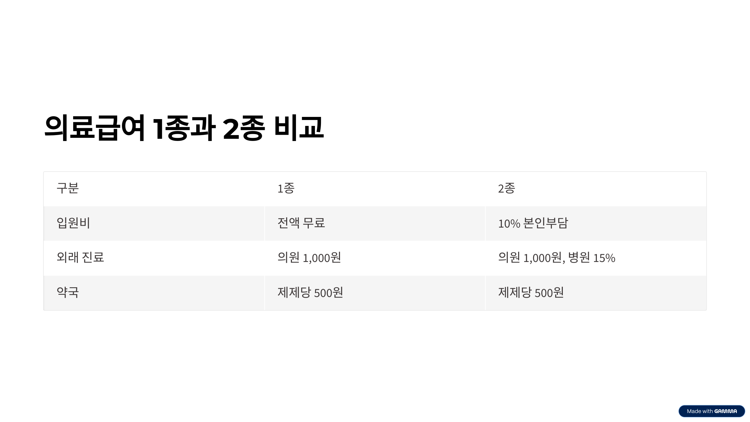 의료급여 1종과 2종 차이점 비교