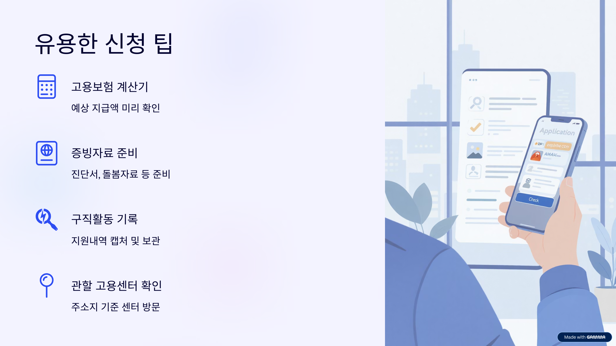 신청은 반드시 주소지 기준 고용센터에서만 가능하니, 가까운 센터를 사전에 검색해 위치와 상담 예약까지 준비해 두는 것이 좋아요.