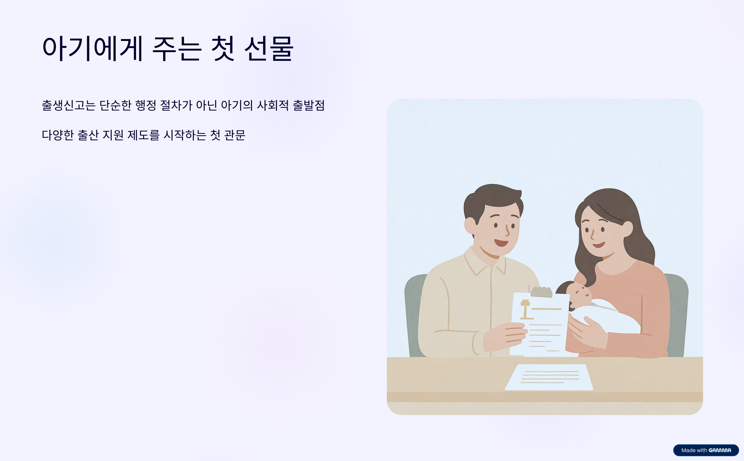 출생신고가 완료돼야만 아동수당, 부모급여, 건강보험 자녀 등록 등 각종 제도 이용이 가능해지기 때문에 반드시 제때 신고해야 합니다.