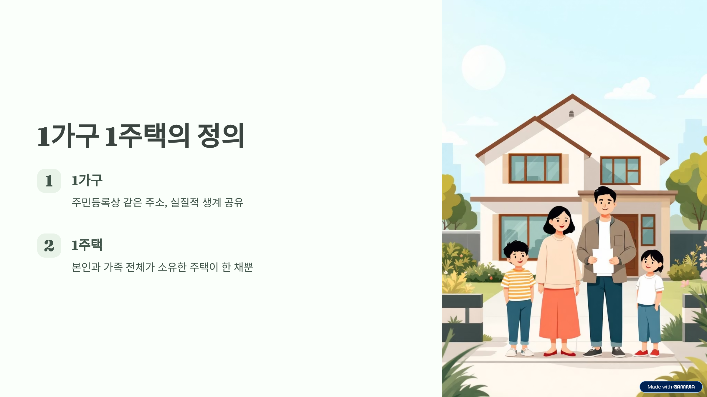 우선 ‘1 가구 1 주택’의 정의부터 정확히 짚고 넘어가야 해요. 단어는 간단하지만, 실제 판단 기준은 꽤 까다로워요.