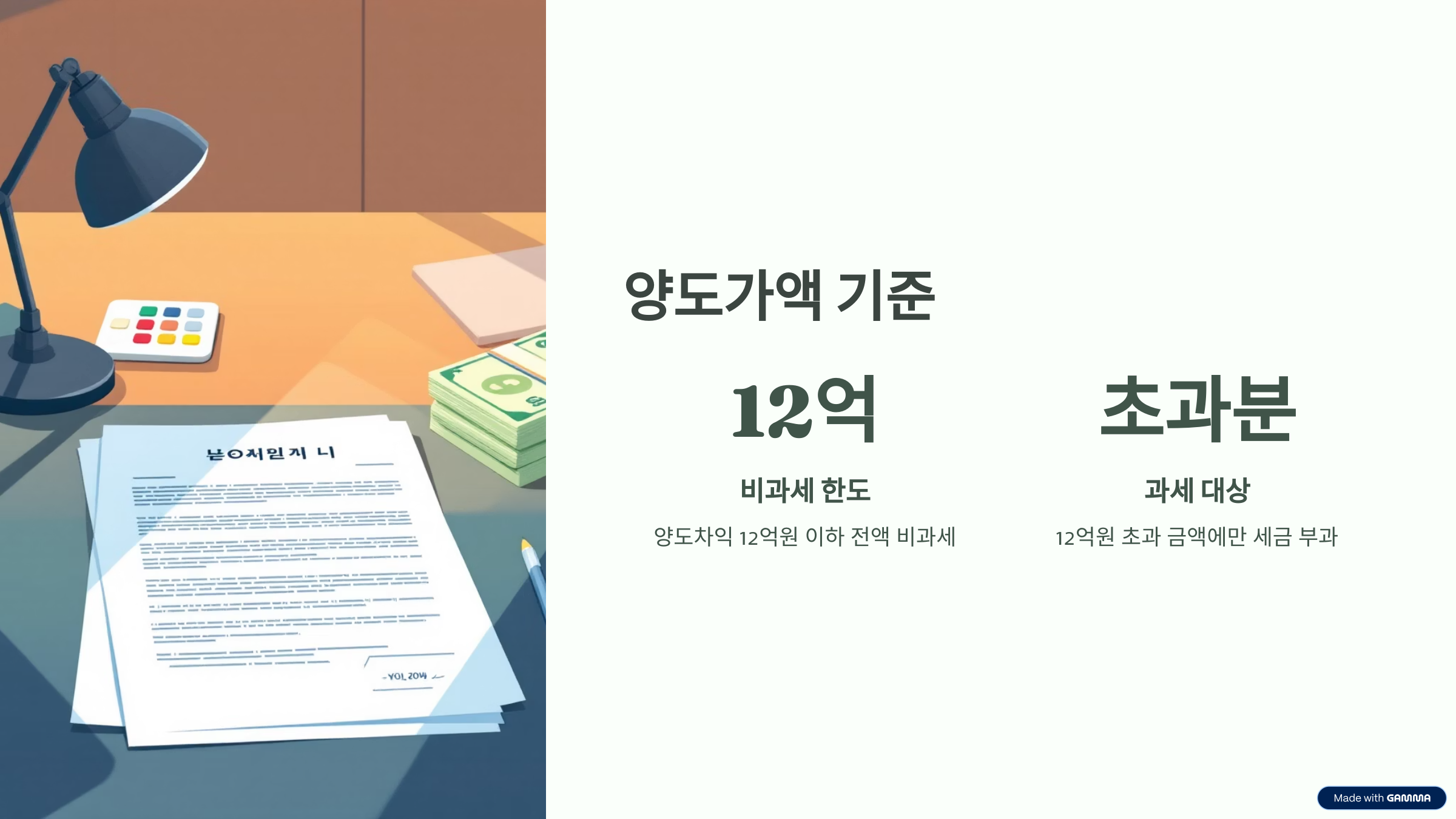 - 양도차익 12억 원 이하: 전액 비과세