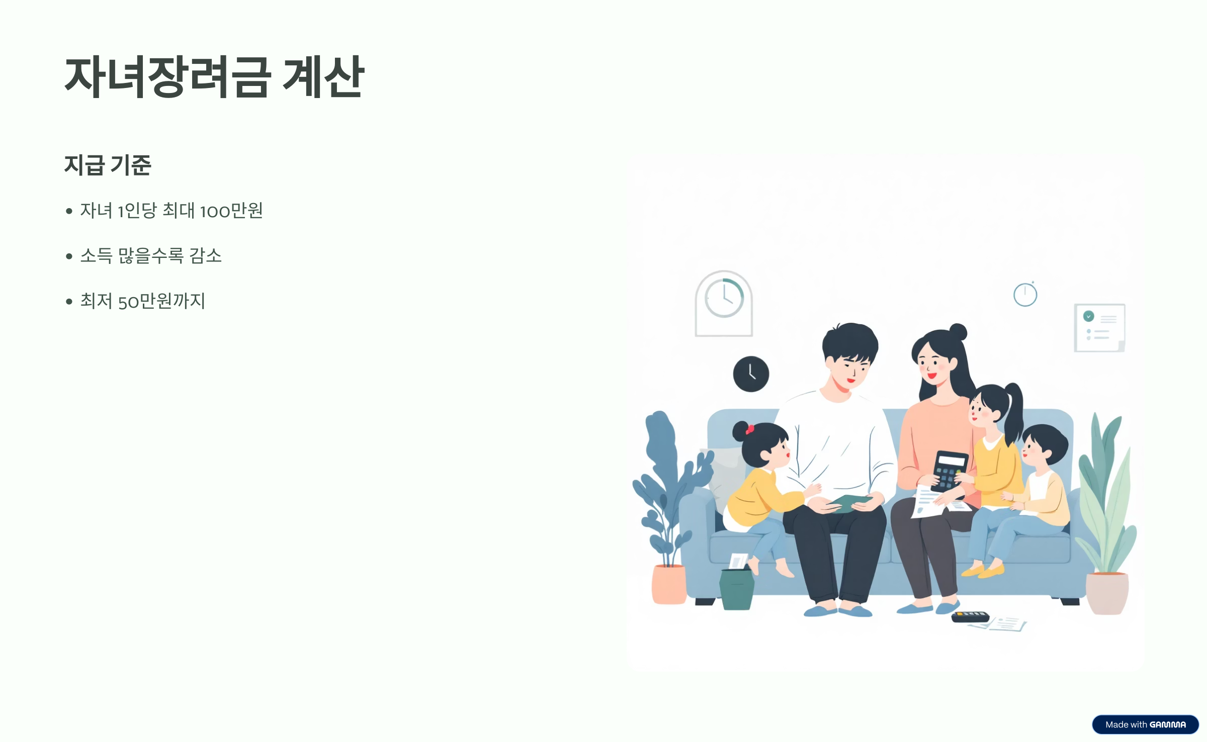 자녀장려금은 자녀 1인당 최대 100만원까지 지원되며, 소득이 많아질수록 점차 줄어들어 최저 50만 원까지 지급됩니다. 자녀 수가 많을수록 받는 금액도 커지지만, 총급여가 높을수록 금액이 낮아지는 구조입니다.