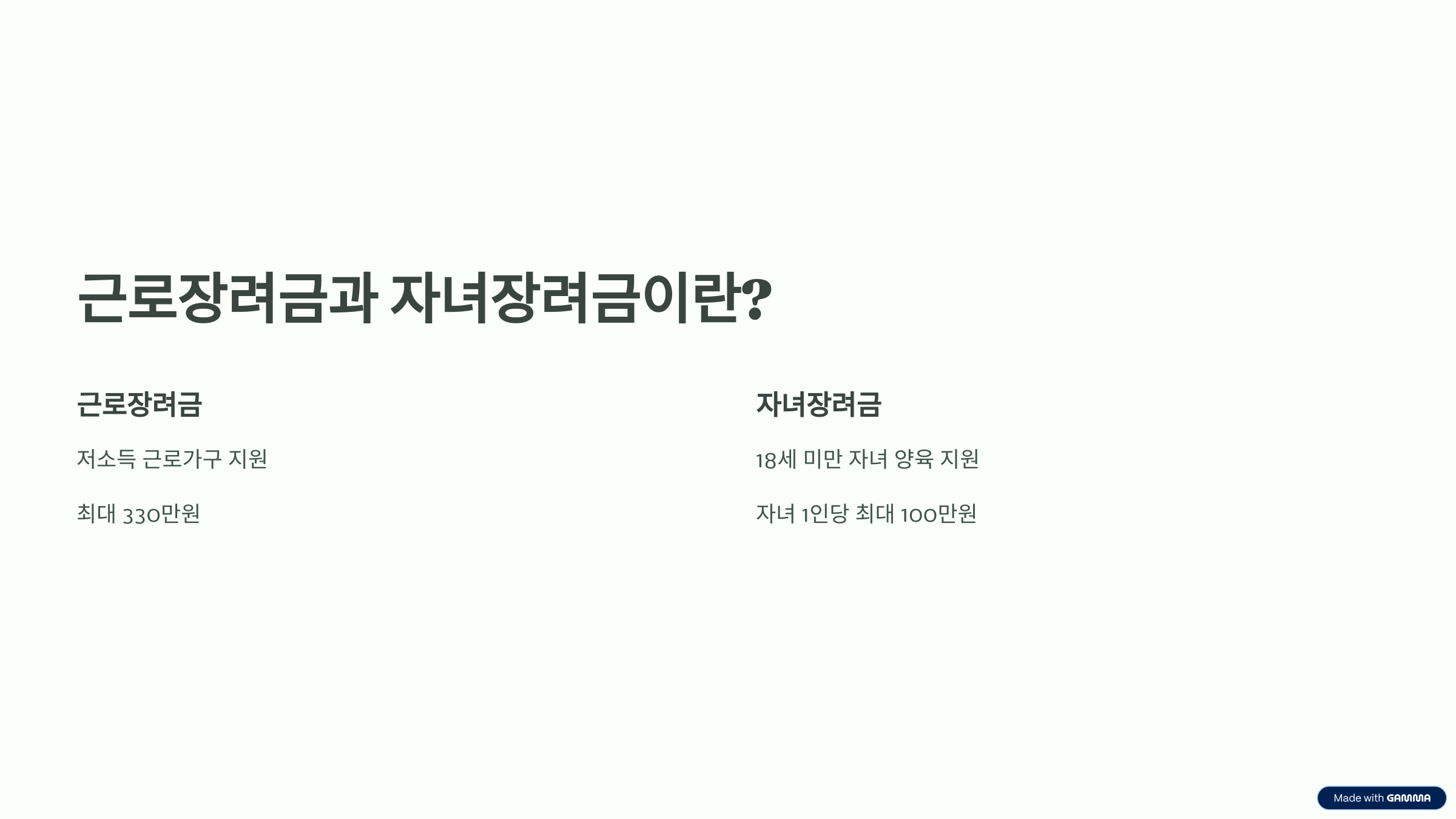 근로장려금과 자녀장려금은 어떤 제도인가요?