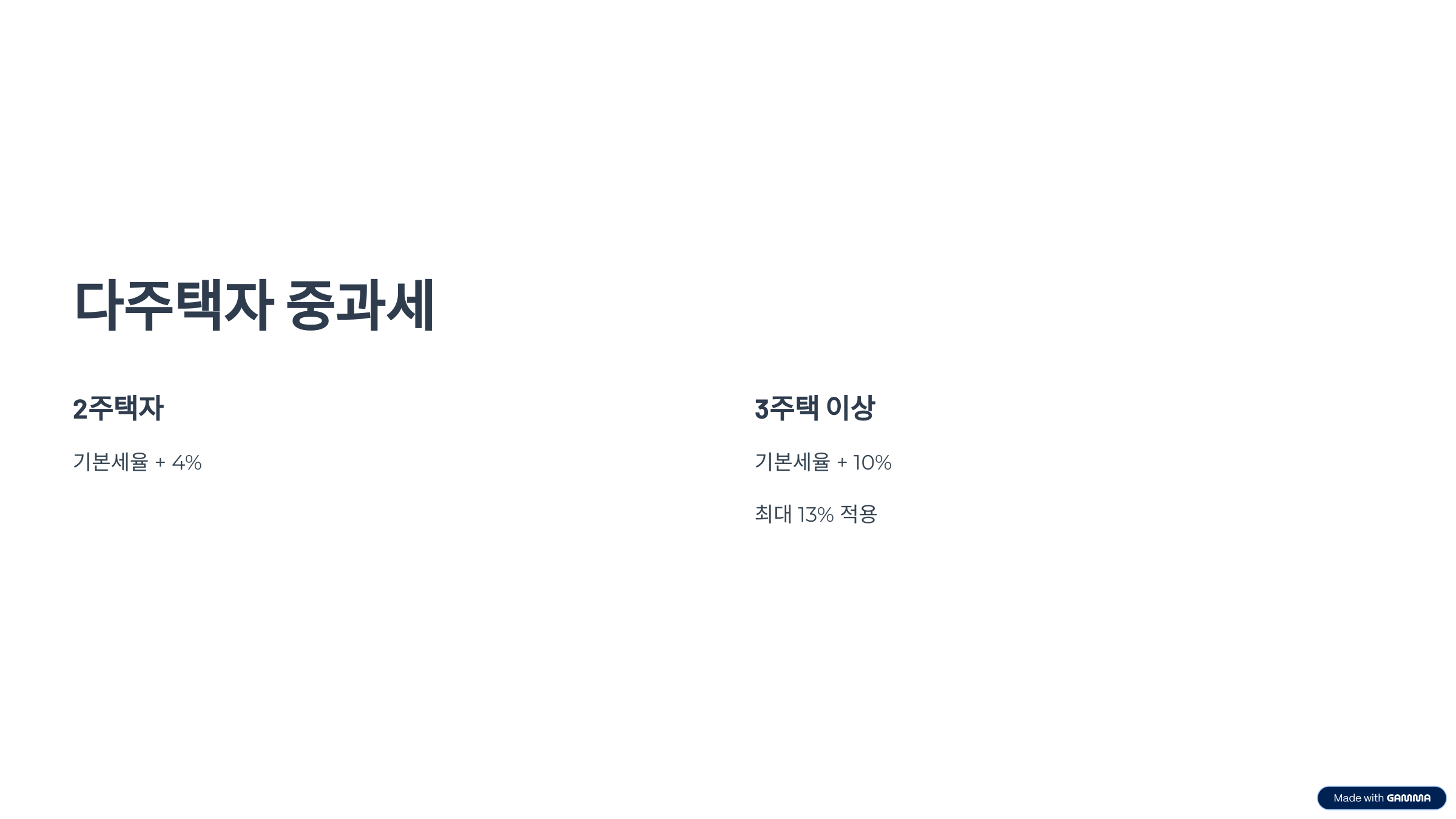 - 2 주택자: 기본세율 + 4%