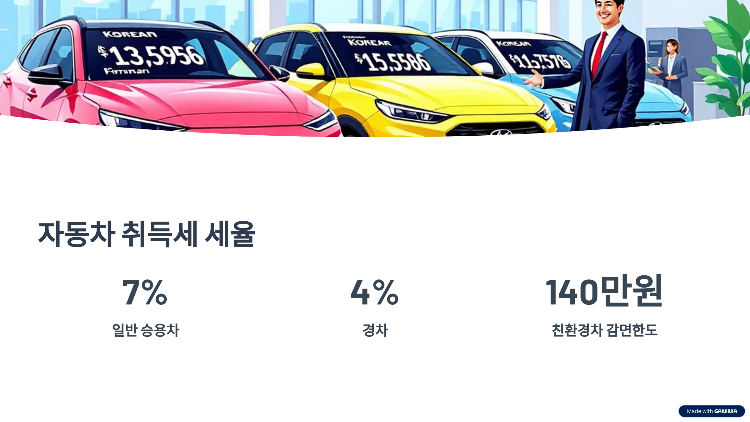 - 취득세 면제 혜택 장기 연장 및 자동차세 연 10만 원 고정 (경차 혜택 지속 중)