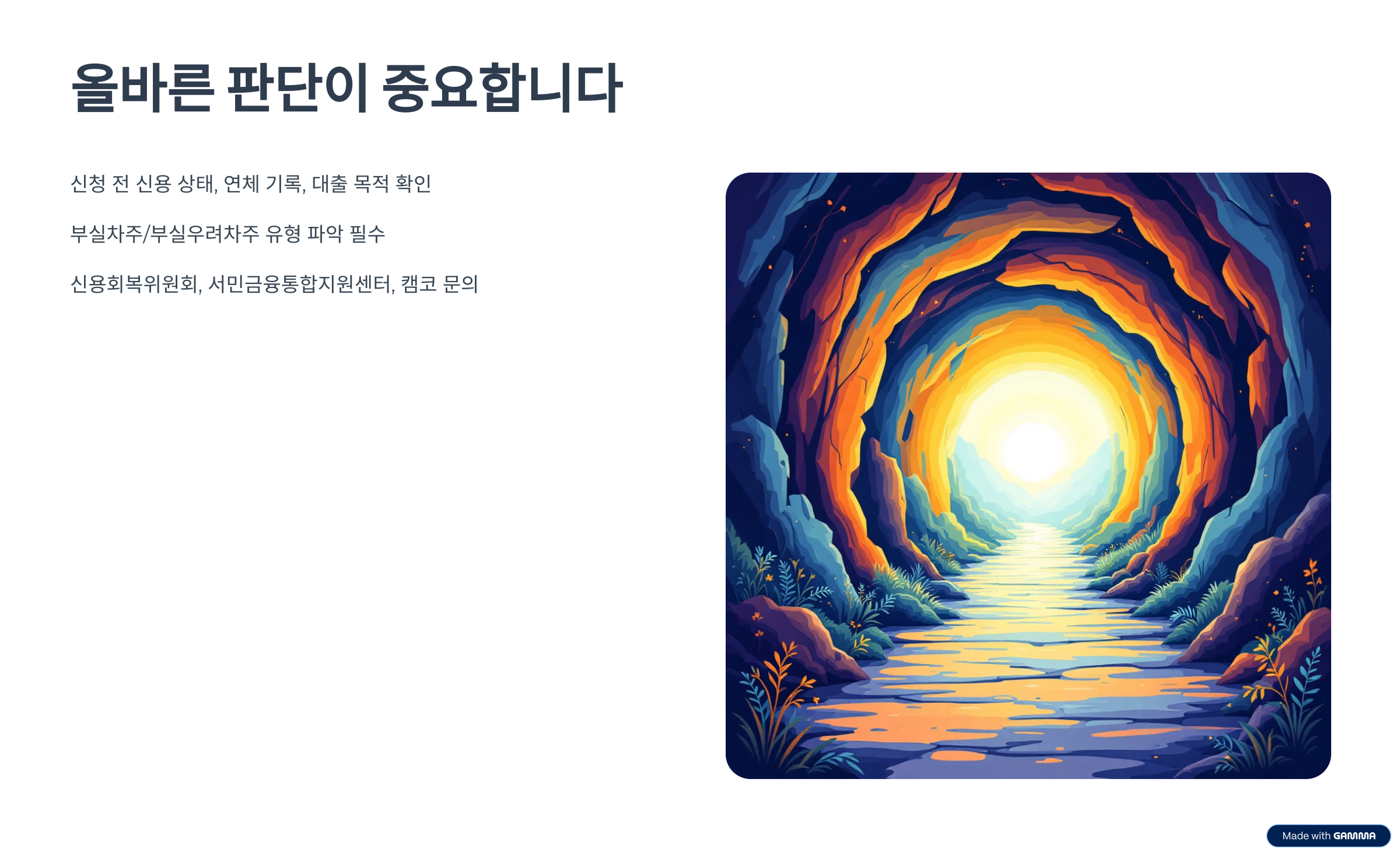 6. 신용상담 전문가 또는 금융기관에서 사전 컨설팅 후 신청하는 것이 안전합니다.