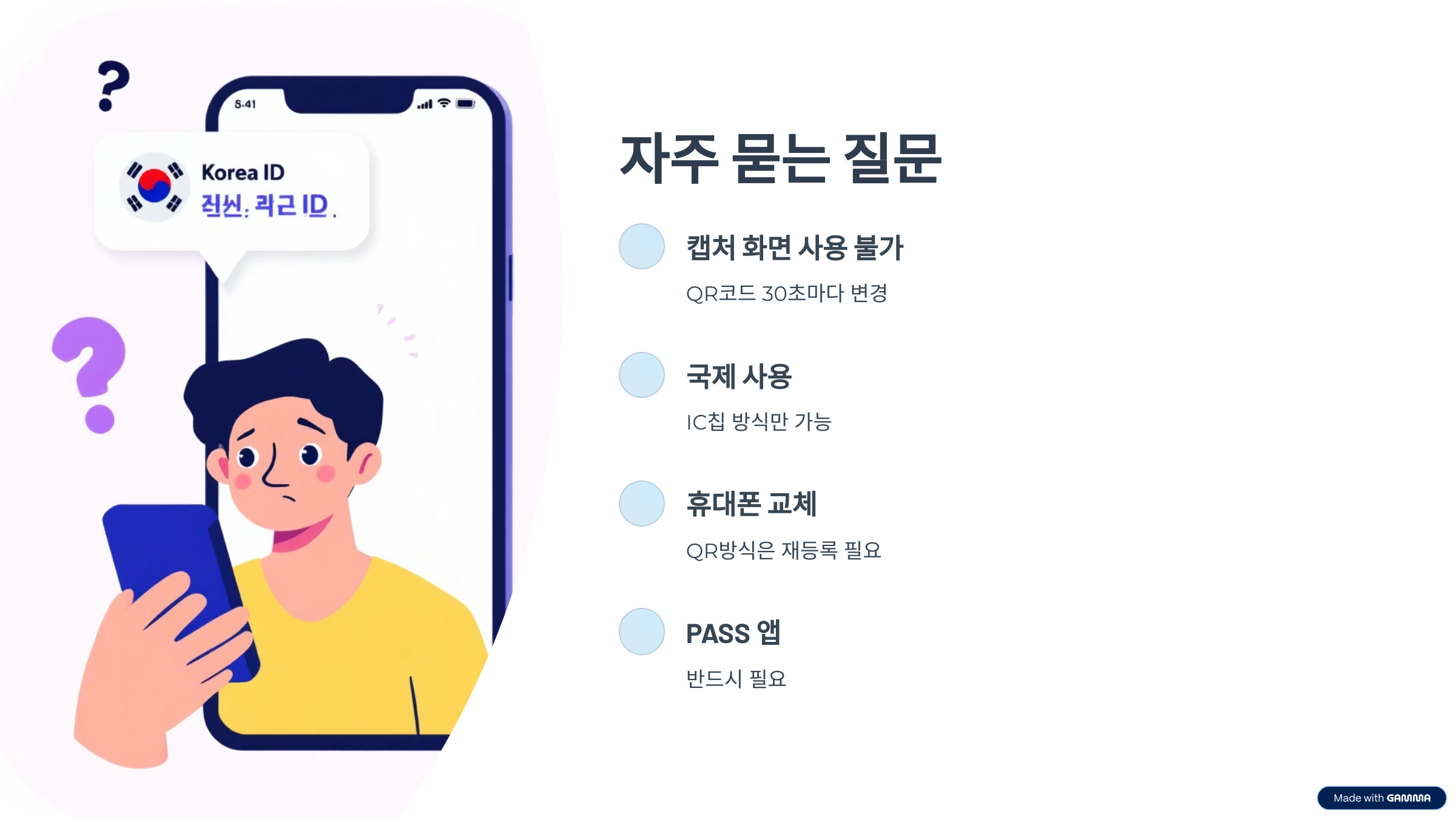 | 재발급 | 기기 초기화 시 주민센터 방문 필요 | 카드만 있으면 스마트폰 교체 가능 |