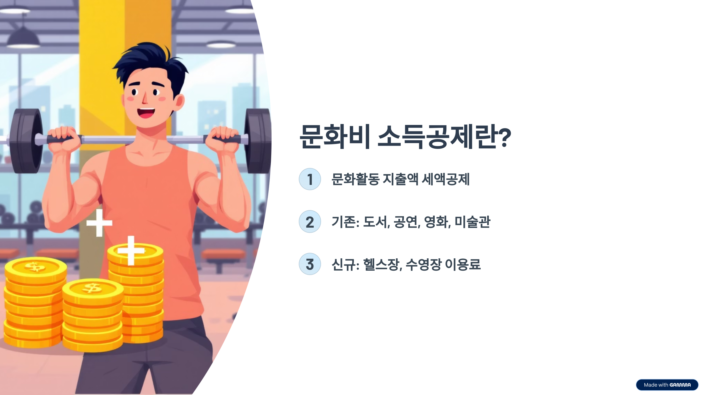 매년 연말정산 시즌이 다가오면 ‘나는 과연 얼마나 돌려받을 수 있을까?’라는 궁금증과 함께 카드 내역, 공제 항목들을 하나씩 챙기게 됩니다. 그중에서도 실생활에서 자주 쓰는 돈으로 세금을 줄일 수 있는 항목이 바로 문화비 소득공제인데요. 2025년 7월부터 이 항목에 헬스장과 수영장이 새롭게 추가되면서 운동하는 사람들에게는 정말 반가운 변화가 생겼습니다.