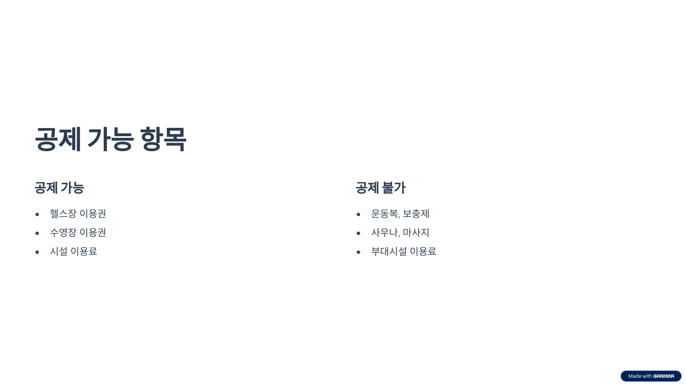 공제 가능 항목과 불가능 항목을 정확히 구분해 두는 것이 중요합니다. 헷갈리는 경우가 많지만 아래 기준을 기억해 두세요.