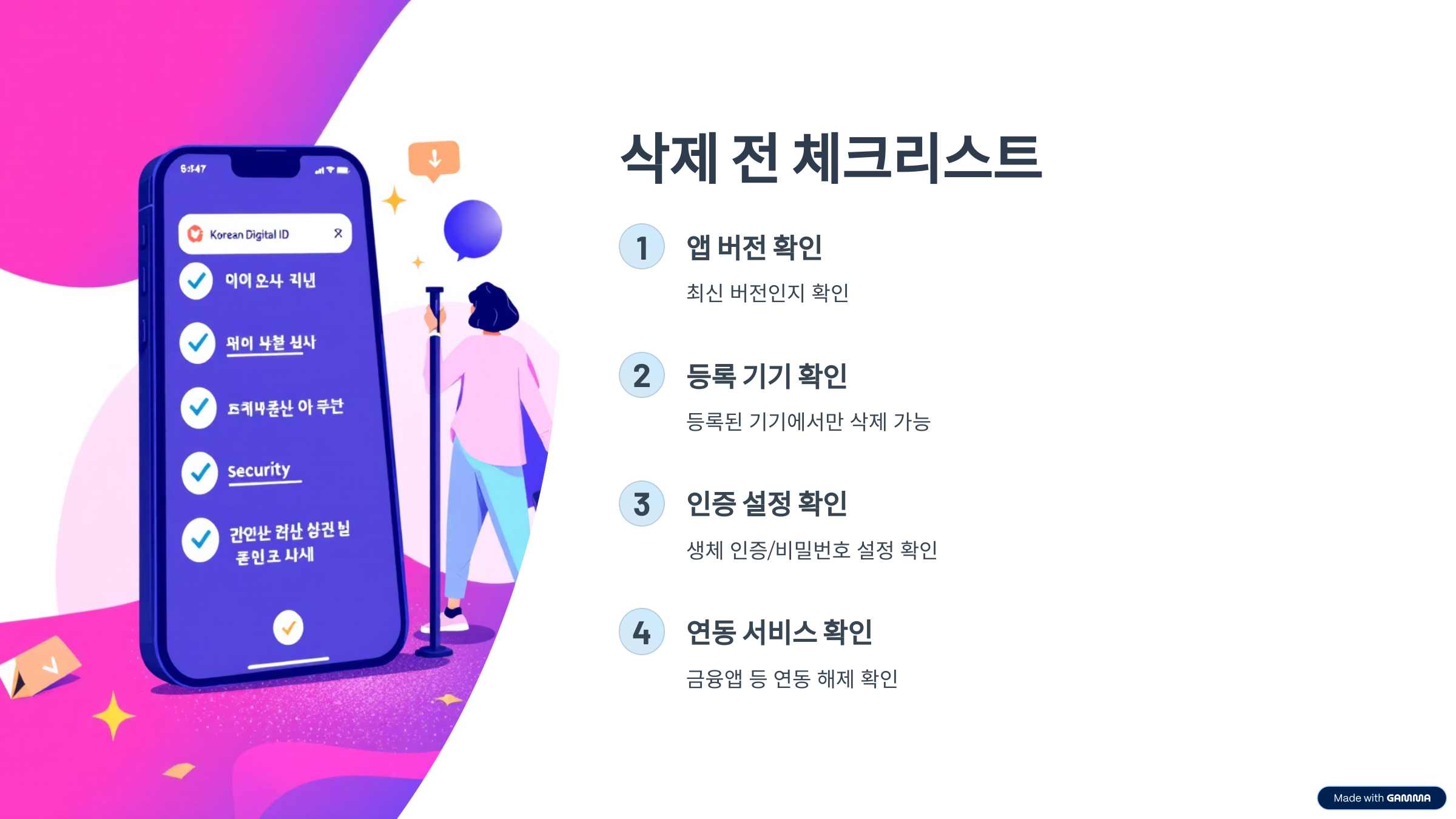 삭제 전에 이 네 가지는 꼭 체크해두세요. 등록 해제가 완전히 되지 않으면 다른 서비스에 연동된 정보가 꼬일 수 있습니다.
