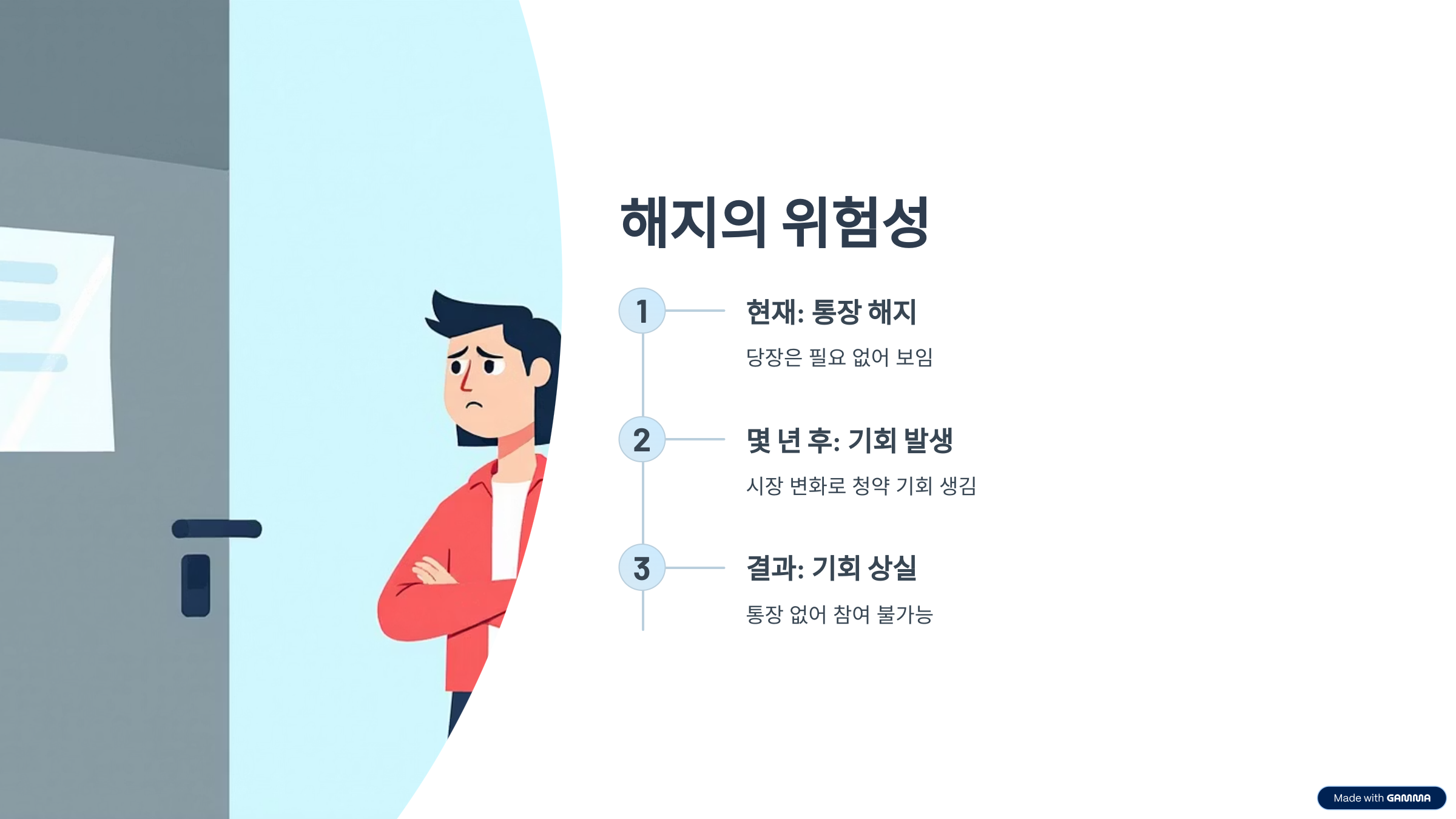 이런 변화에 민첩하게 대응하기 위해선 통장 유지가 필수입니다.