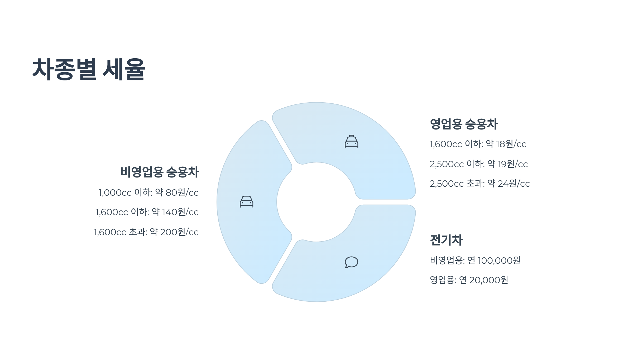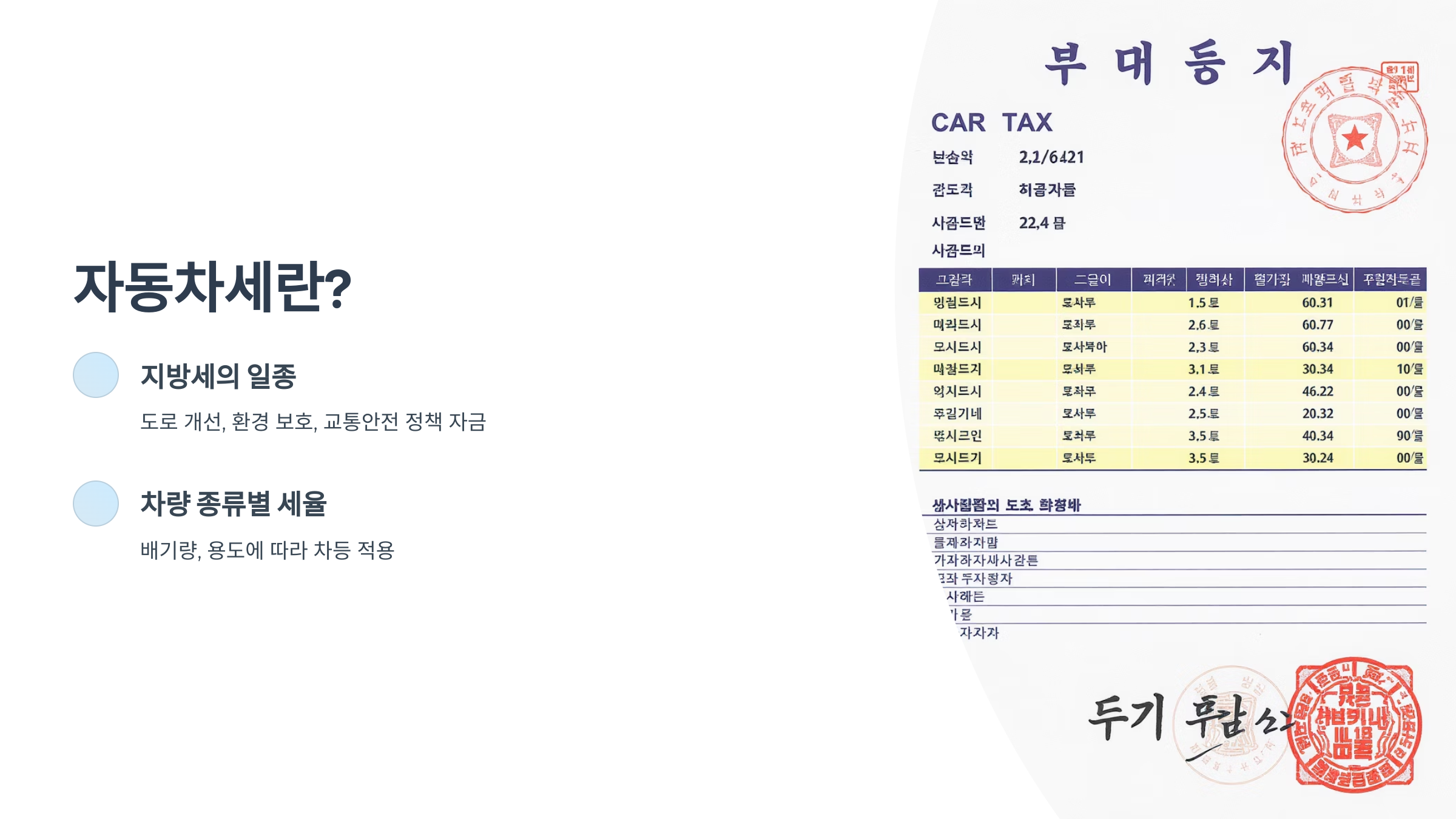 차량 종류, 배기량, 용도에 따라 세율이 달라요:
