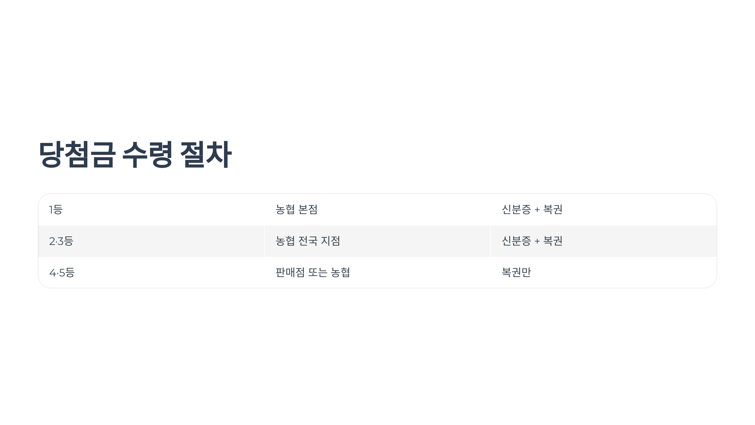 - 수령처: 판매점 또는 농협 지점 (복권만 지참)