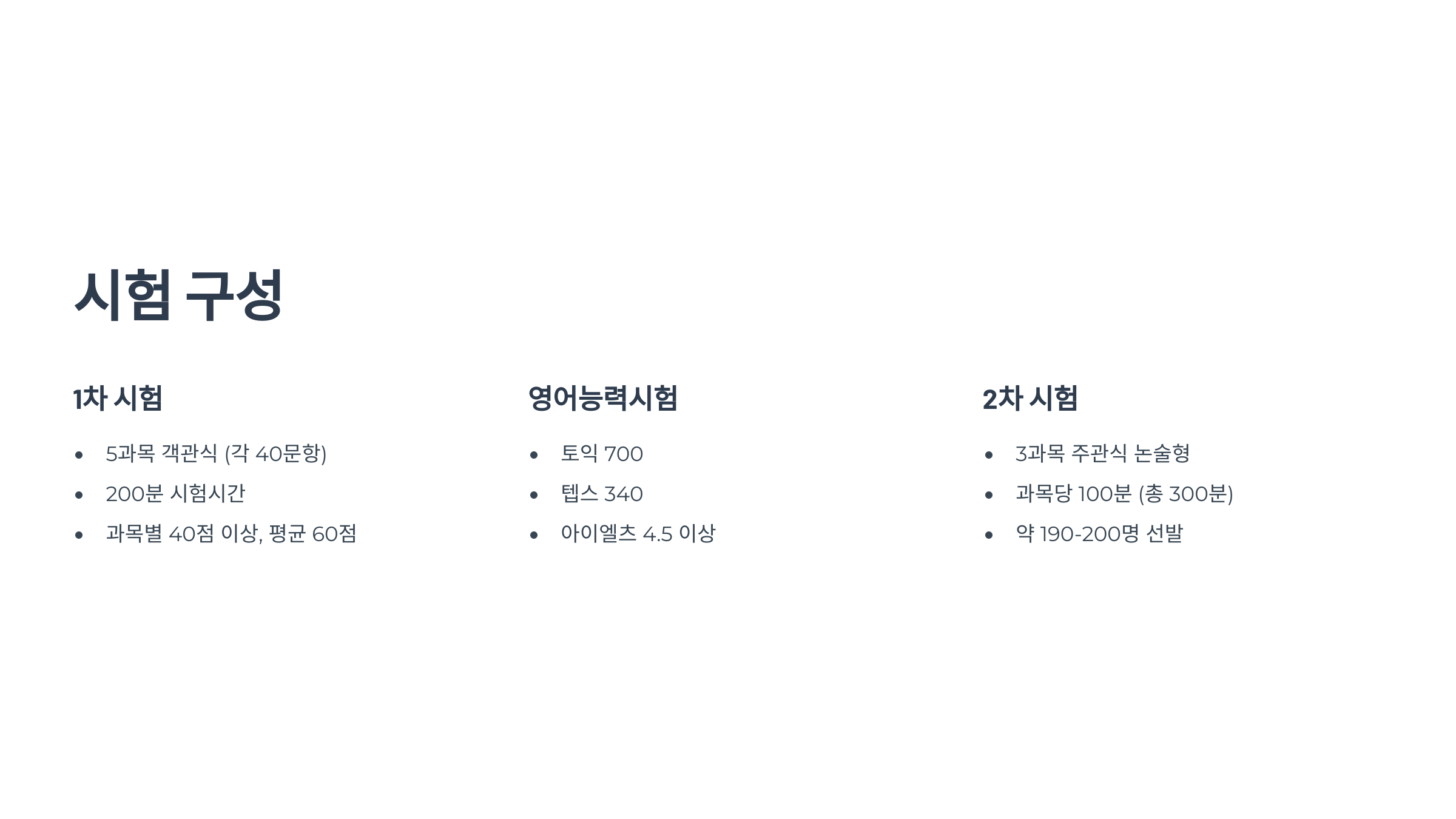 시험 구성 – 1차, 영어, 2차