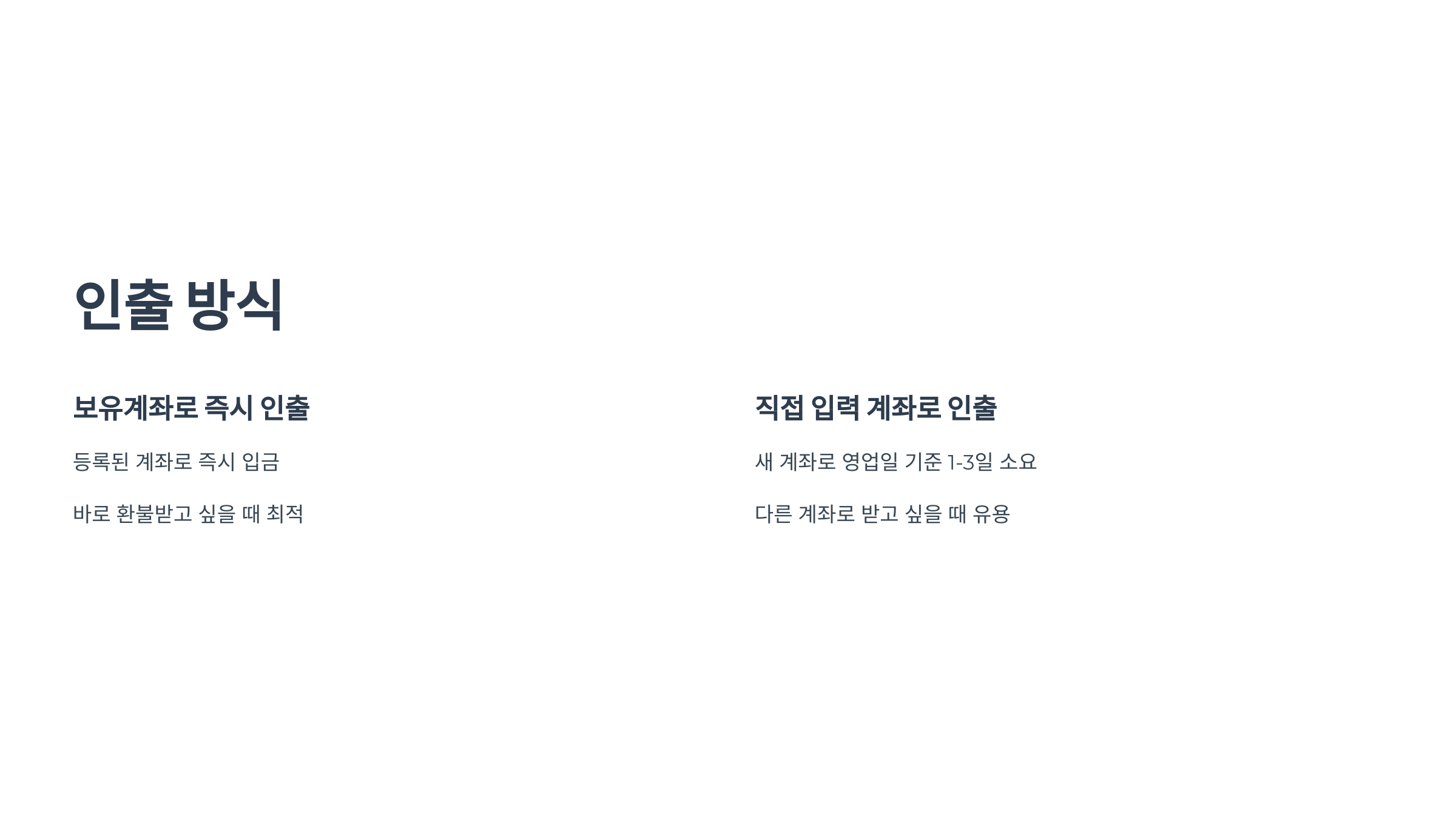 - 인출 방식 선택 (‘보유계좌’ 또는 ‘직접입력’)