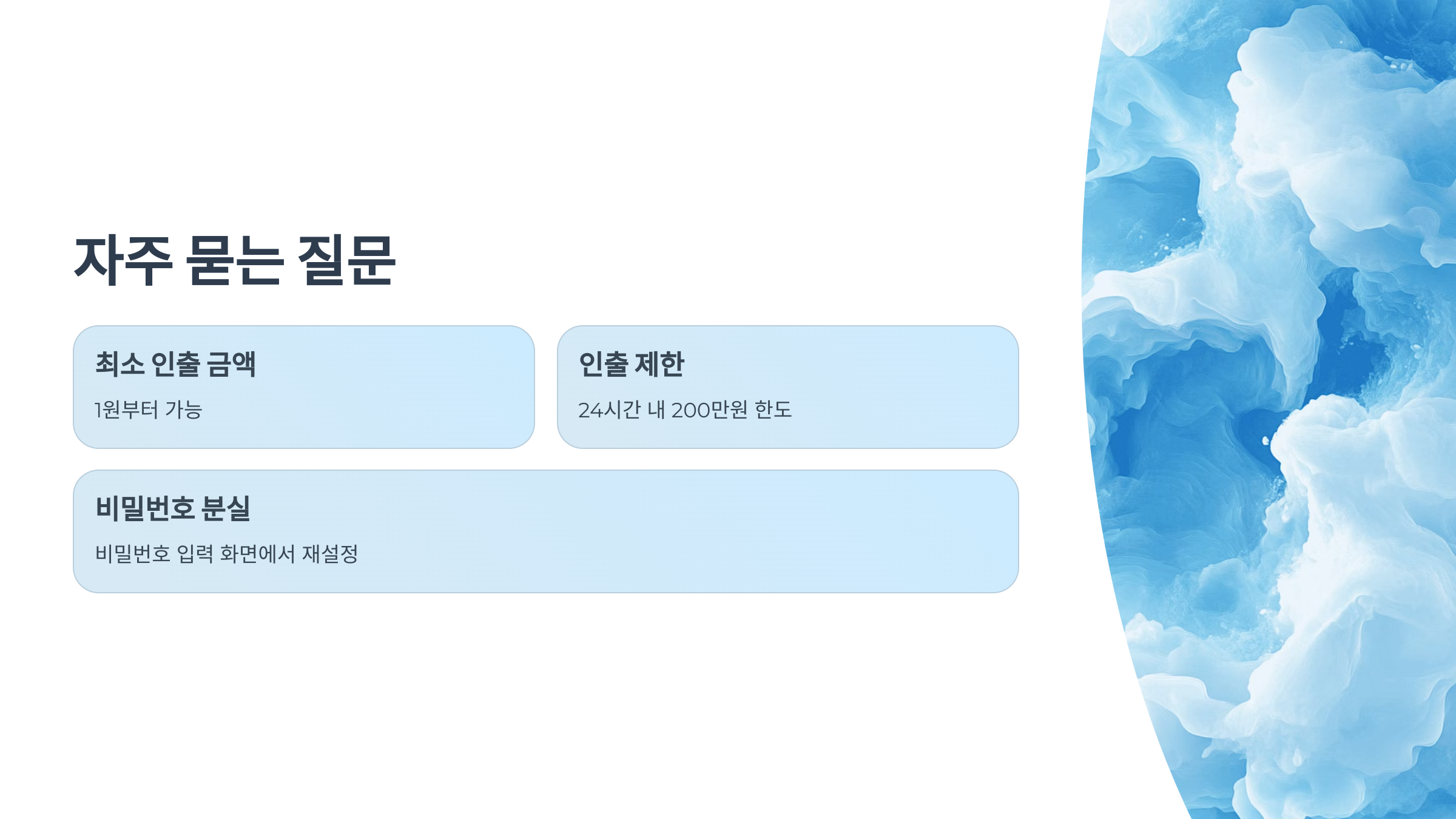 - 24시간 한도 200만 원, 1원부터 출금 가능