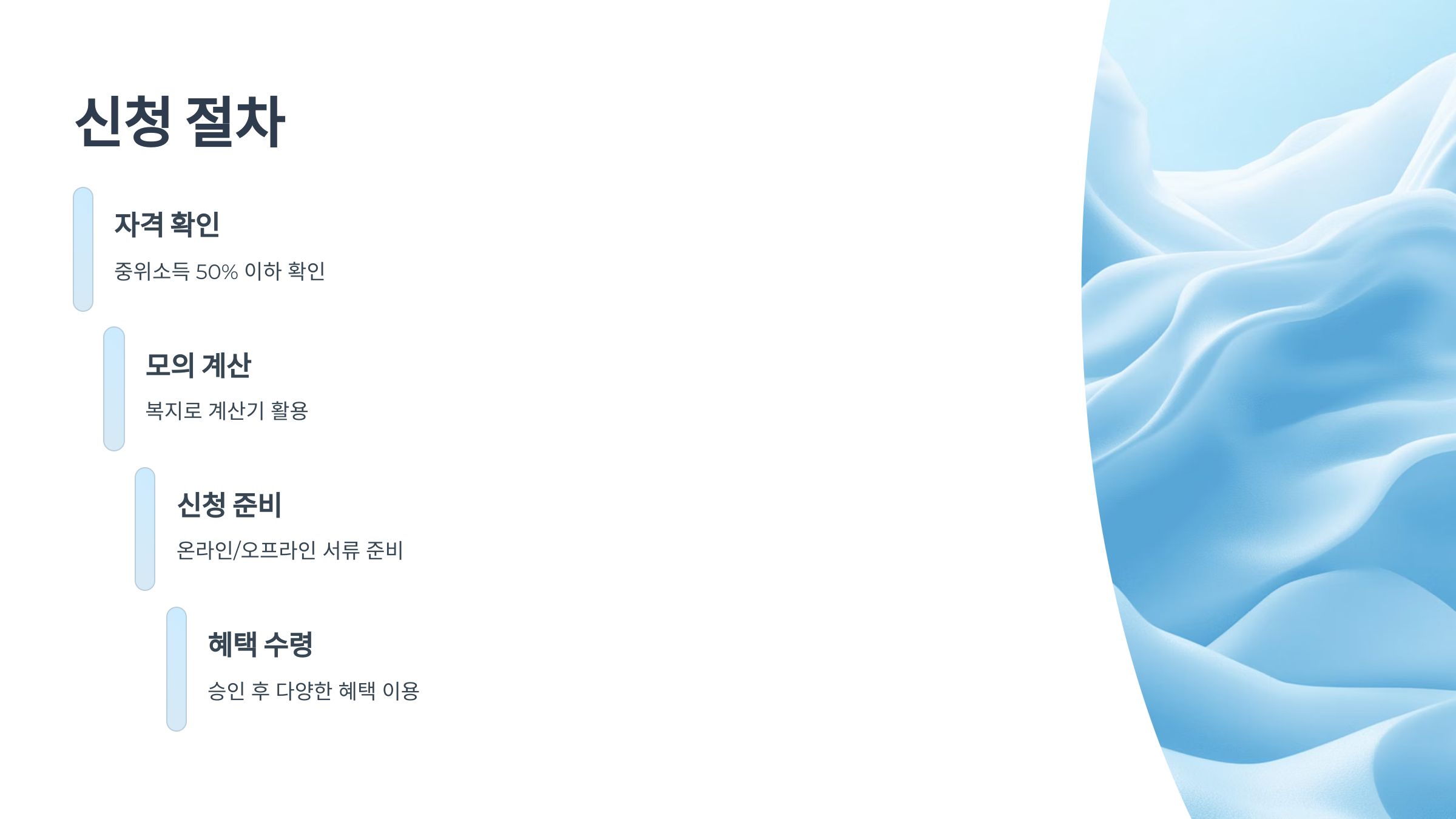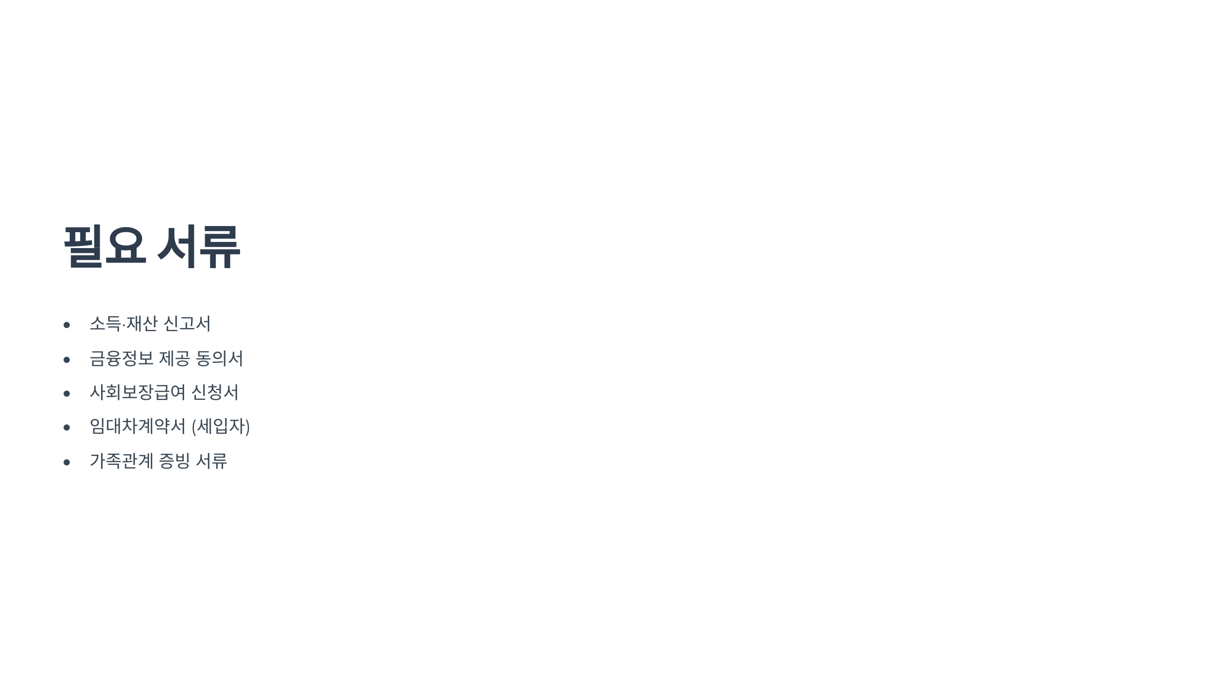 - 심사 기준: 명확한 신청자 기준, 서류 정확도, 소득·재산 증빙 필요