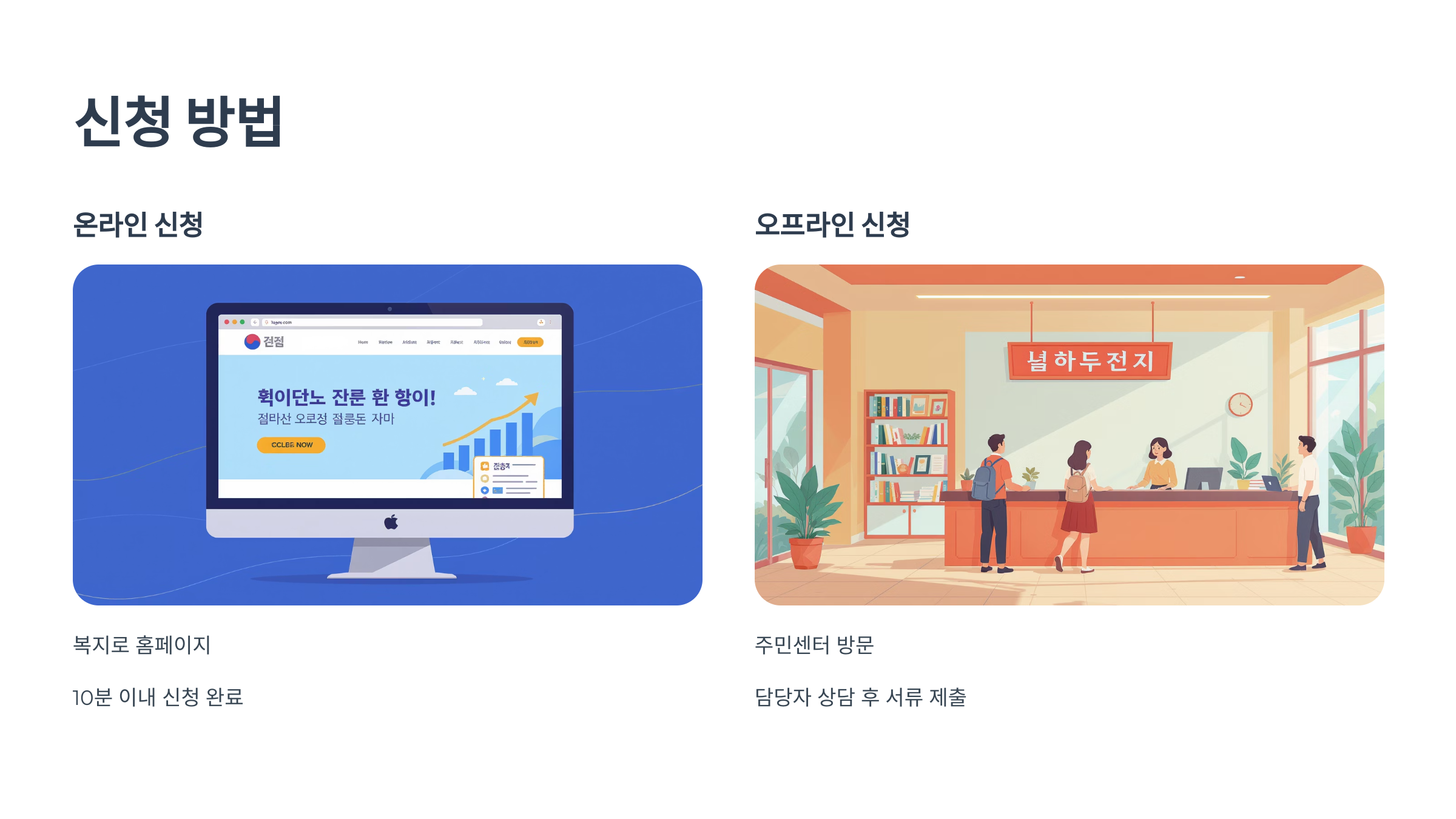- 오프라인: 주민센터 방문 + 서류 준비