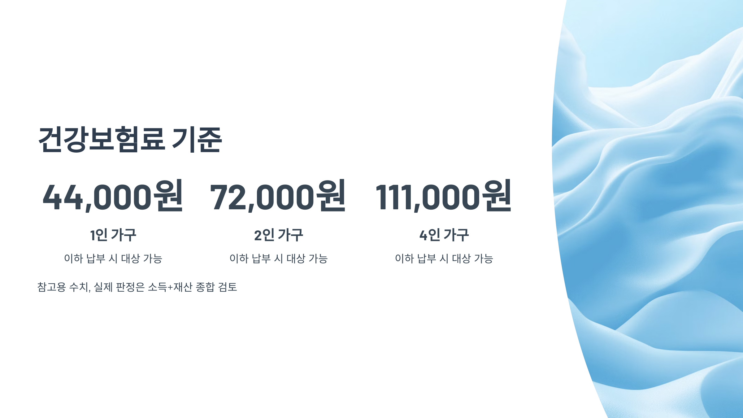 - 1인 가구: 약 44,000원 이하