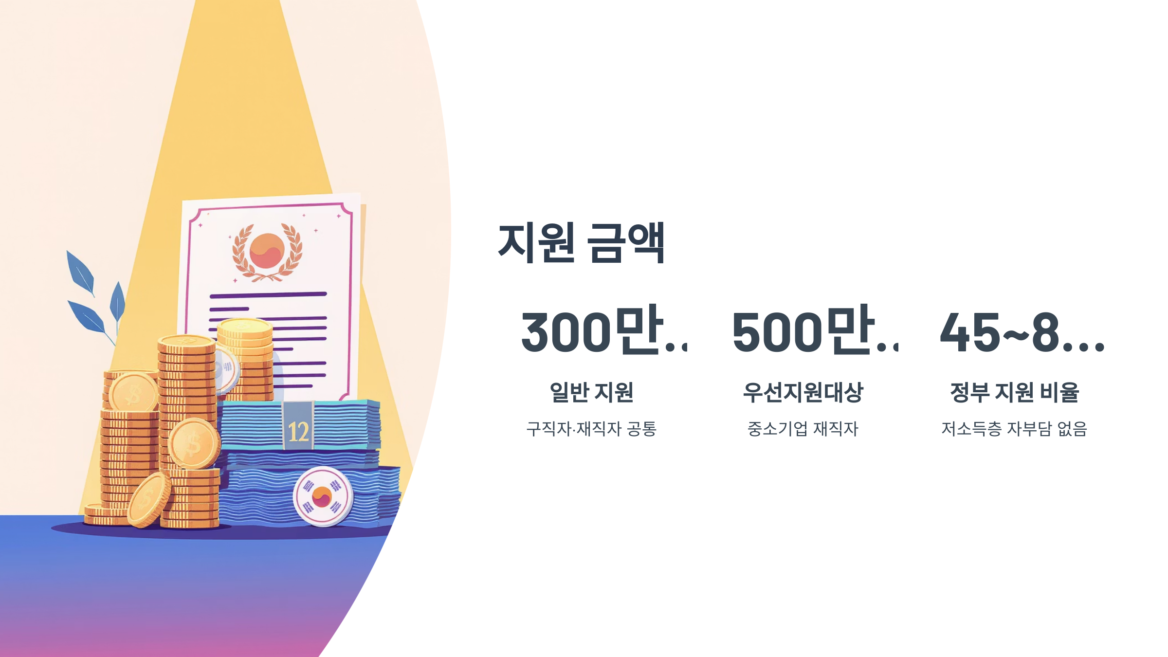 재직자 여러분 중 우선지원대상기업에 속하는 경우 500만 원까지 더 많은 지원을 받으실 수 있습니다.