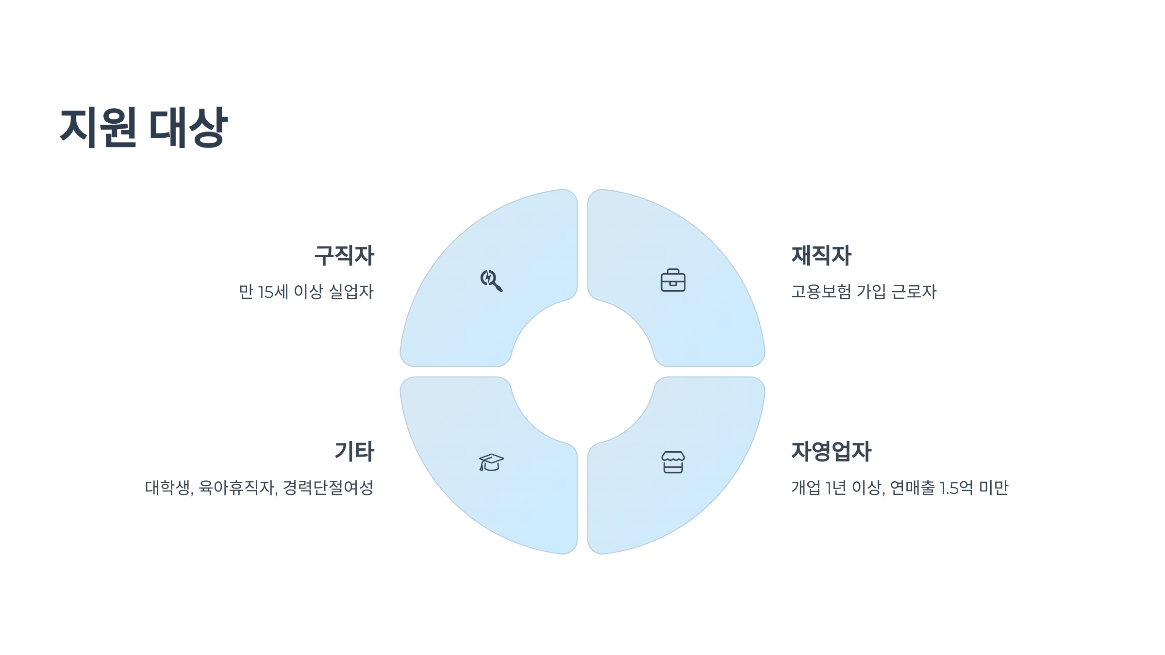 • 만 15세 이상 실업자라면 누구나 신청 가능합니다.