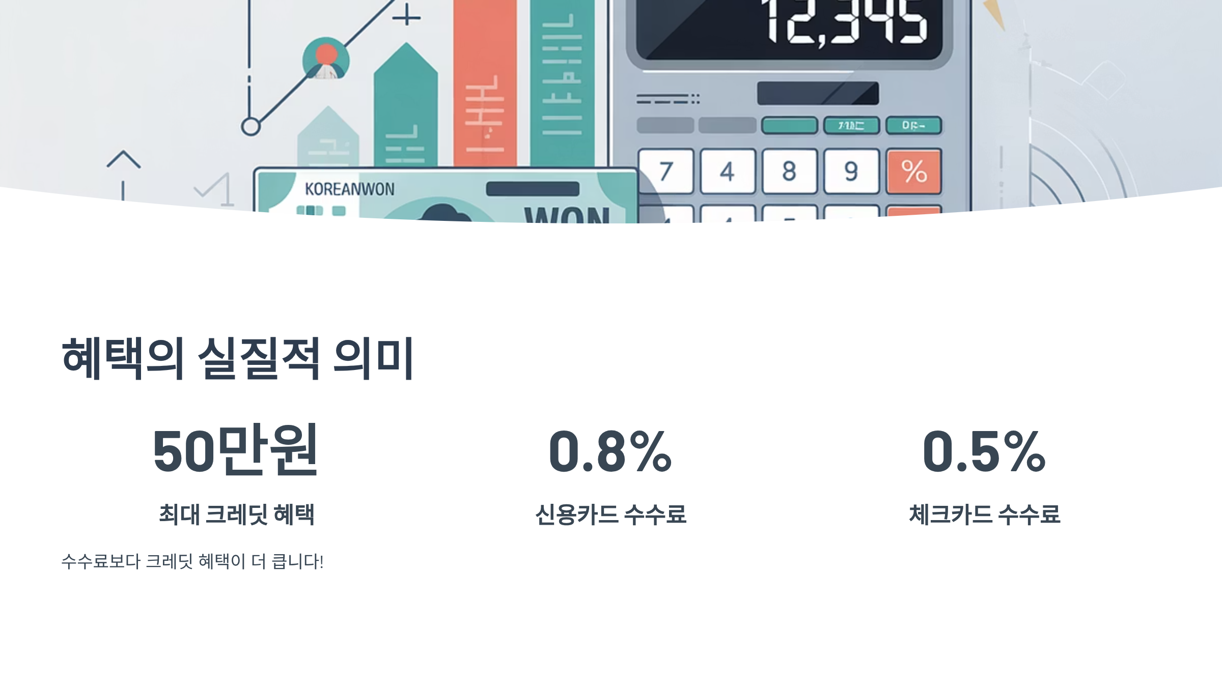 - 카드 납부 시 수수료가 발생할 수 있어요: 카드 납부 시에는 신용카드는 0.8%, 체크카드는 0.5% 정도의 수수료가 발생할 수 있습니다. 하지만 소상공인 크레딧으로 받는 혜택 금액이 이 수수료보다 크다면 충분히 이득이니 너무 걱정하지 마세요! 크레딧으로 할인받는 금액이 수수료를 상쇄하고도 남을 거예요.