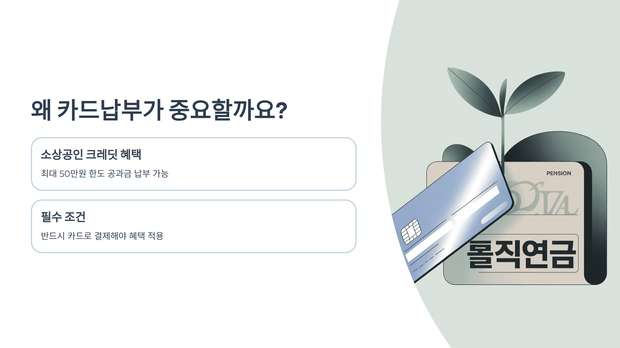 오늘은 2025년 최신 정보를 바탕으로 국민연금 카드납부 신청 방법과 함께 소상공인 크레딧을 연계하여 혜택을 최대로 누릴 수 있는 꿀팁들을 자세히 알려드릴게요. 혹시 기존에 계좌 자동이체로 납부하고 계셨더라도, 생각보다 쉽게 변경할 수 있으니 너무 어렵게 생각하지 마세요!