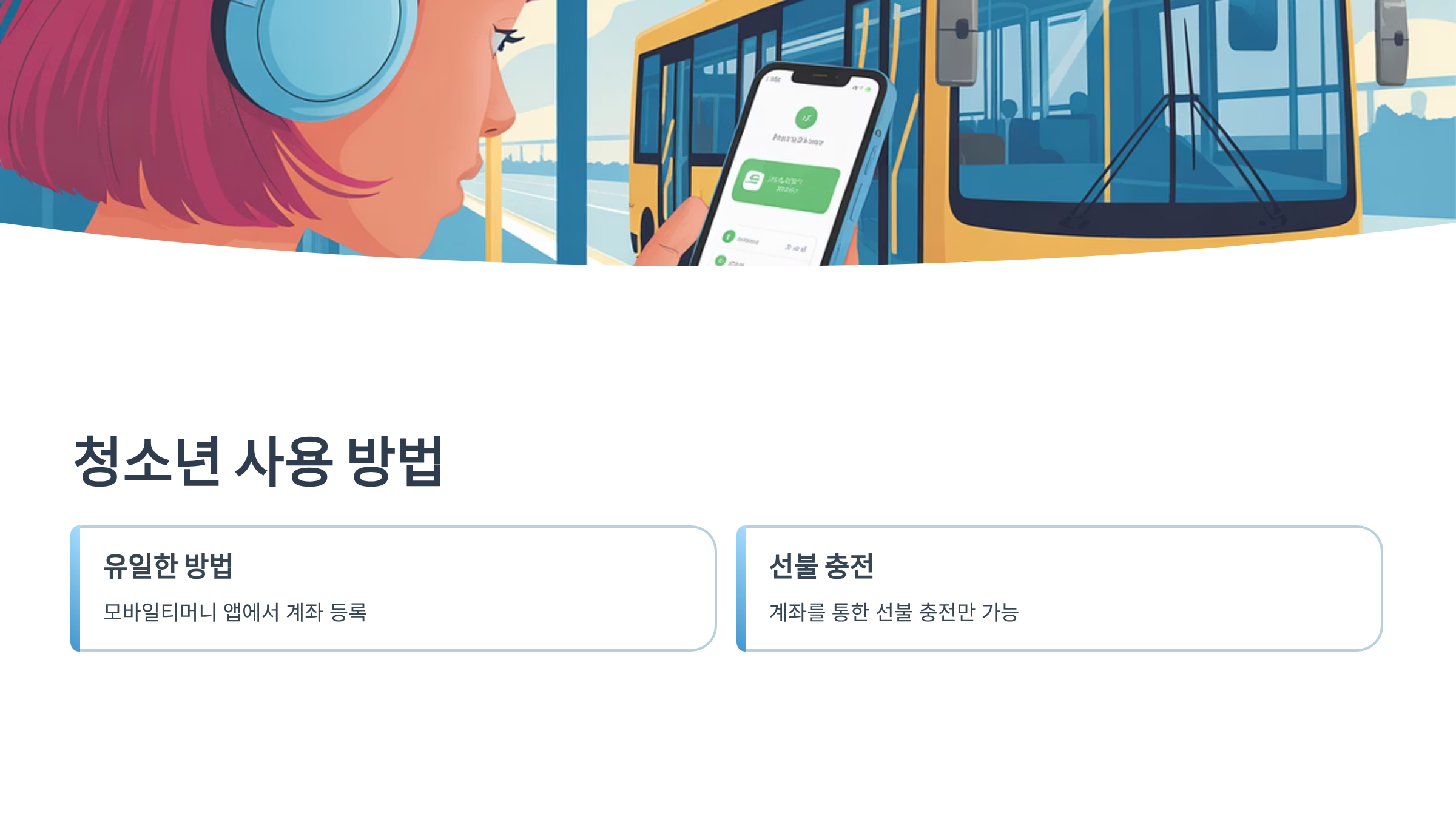 애플페이도 사용하지 않고, 현대카드도 없으며, 아직 신용카드 발급이 어려운 청소년이라면 현재로서는 모바일티머니 앱을 통한 '계좌 등록' 방식이 아이폰 교통카드를 사용할 수 있는 유일한 방법입니다. 계좌를 통해 선불 충전을 해야만 아이폰으로 대중교통을 이용할 수 있다는 점을 기억해 주세요. 다소 불편하게 느껴질 수도 있지만, 아이폰으로 대중교통을 이용할 수 있다는 것 자체에 의미를 두어야 할 것 같아요.