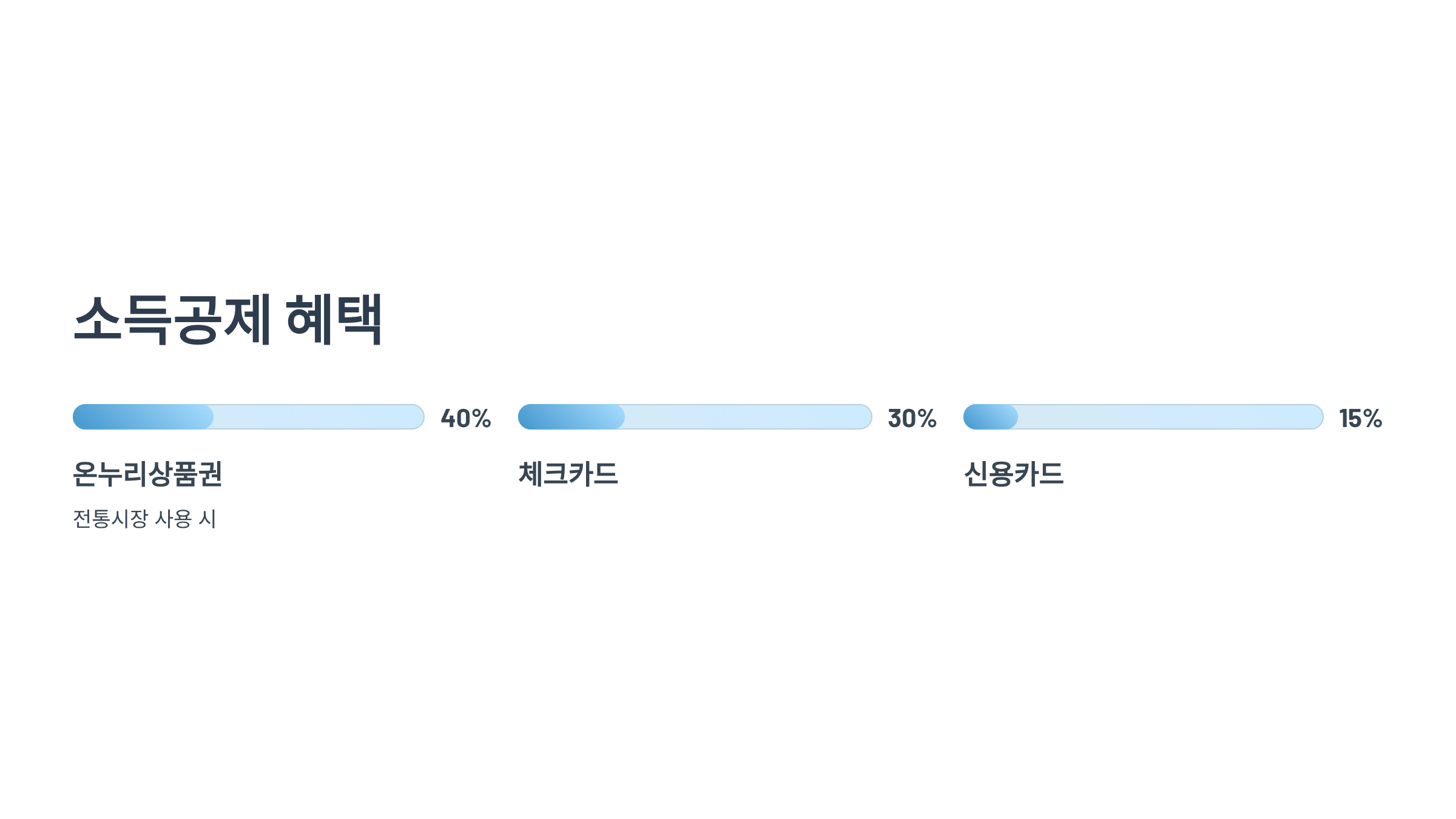 • 전통시장 온누리상품권 사용 시: 1천만 원 소비액에 대해 무려 40% 공제 = 총 400만 원 소득공제