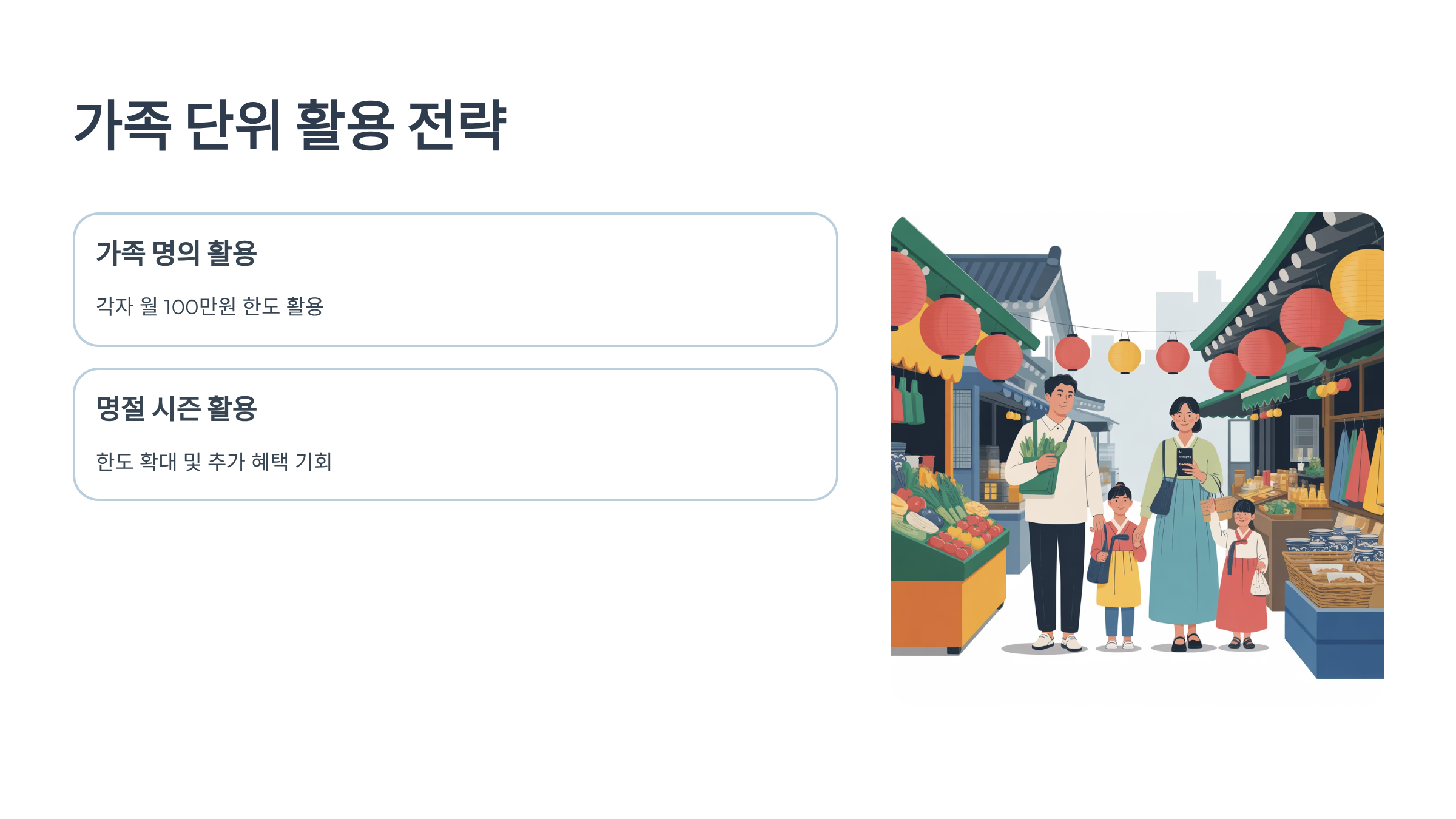 온누리상품권을 더욱 효과적으로 활용하는 방법 중 하나는 바로 가족 단위로 사용하는 것입니다. 온 가족이 함께 참여한다면 훨씬 더 많은 할인 혜택을 누리면서 지역 경제 활성화에도 기여할 수 있어요.