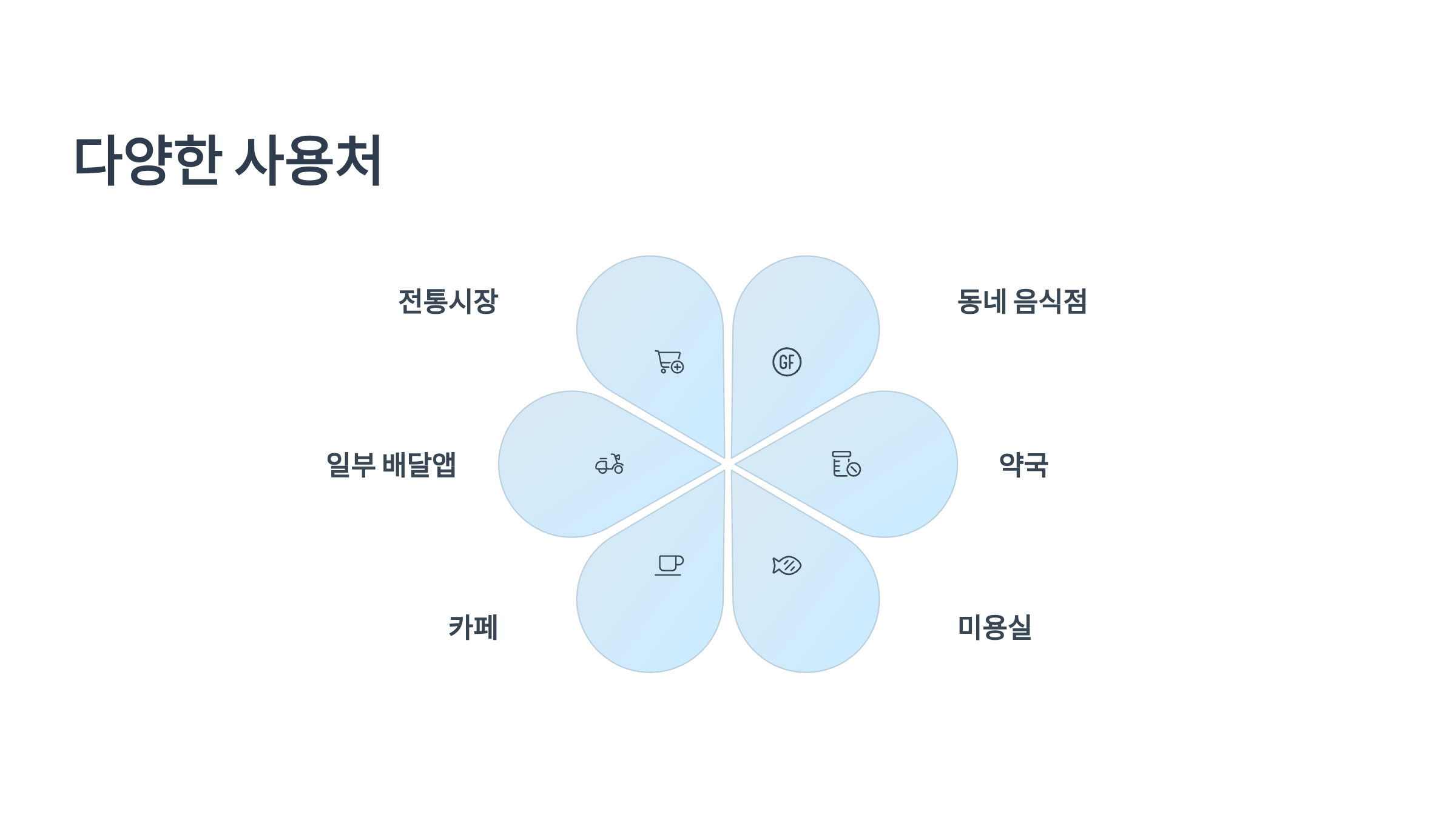 • 주요 사용 가능처: 전국 전통시장, 재래시장, 소형 슈퍼마켓, 동네 음식점, 약국, 병원, 제과점, 미용실, 카페 등 지역 내 소상공인 가맹점이라면 대부분 사용이 가능합니다.