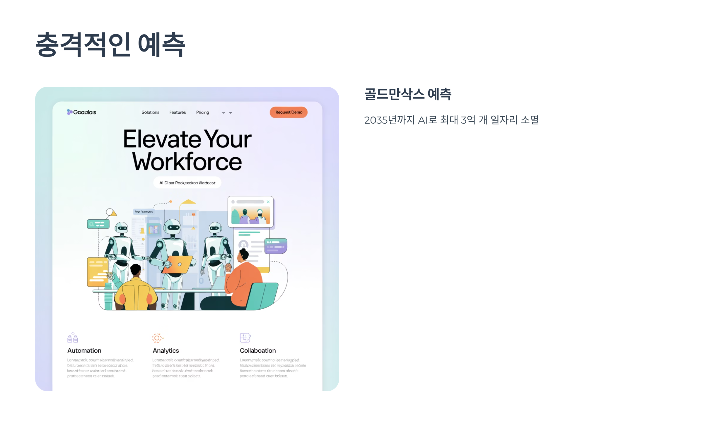 이번 대규모 희망퇴직의 배경에는 단순히 경기 침체뿐만 아니라 인공지능(AI) 기술의 발전이 크게 작용하고 있다는 분석이 지배적입니다. 많은 전문가들은 AI가 이제 웬만한 직원을 대체할 수 있는 수준까지 진화하면서, 특히 고학력, 고임금의 '화이트칼라' 일자리에 경고등이 켜졌다고 말합니다. 미국 투자은행 골드만삭스는 2035년까지 AI로 인해 최대 3억 개의 일자리가 사라질 수 있다고 관측하기도 했습니다.