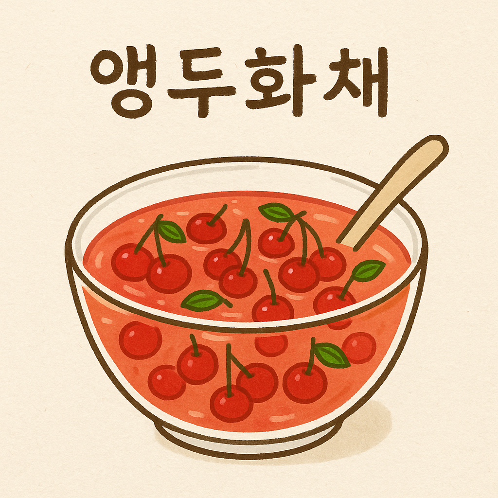 단오 전후로 제철을 맞는 앵두는 예로부터 중요한 명절 과일이었다. 앵두화채는 앵두를 꿀물이나 설탕물에 담가 시원하게 마시는 전통 음료로, 새콤달콤한 맛과 상큼한 색감 덕분에 특히 여성들과 아이들에게 인기가 많았다. 단오날 먹는 음식 중 보기에도 화사하고 갈증 해소에 탁월한 별미다.