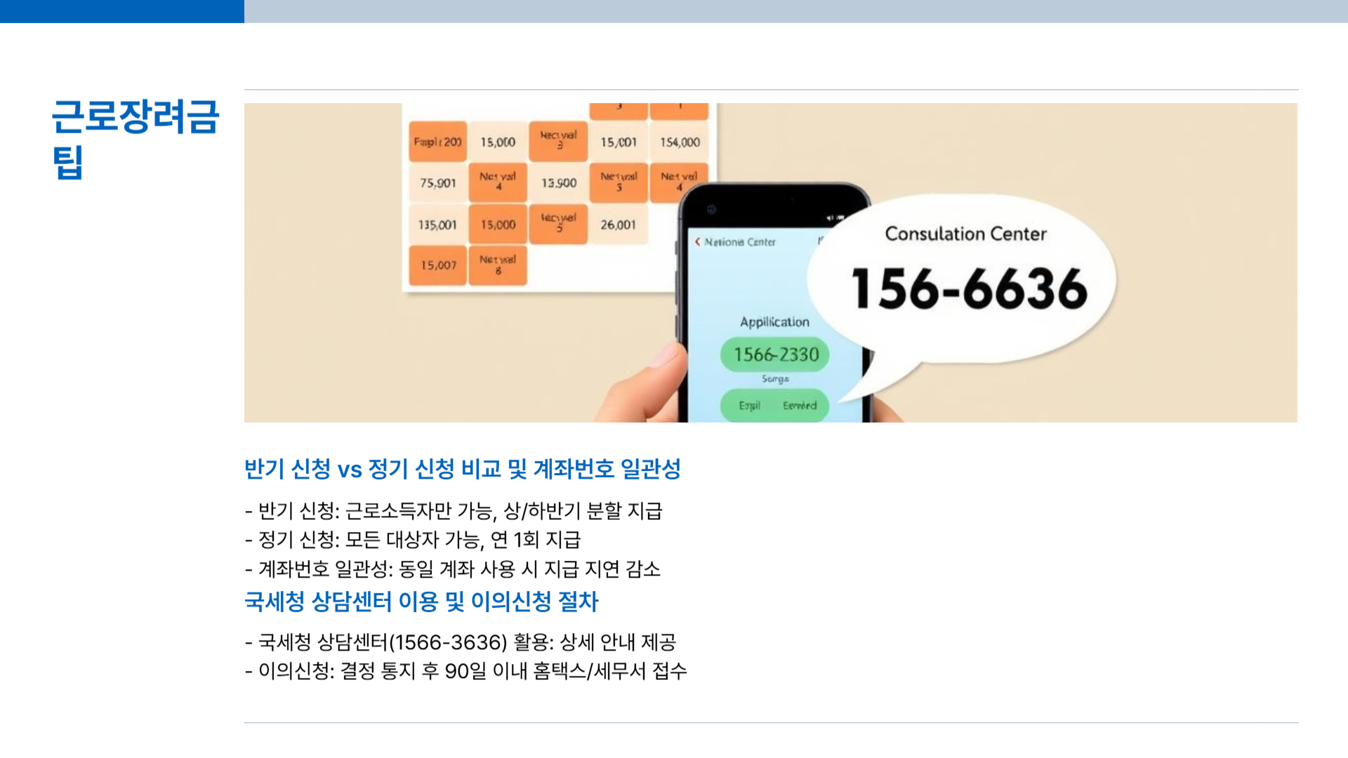 - 근로소득자라면 반기 신청도 가능하지만, 정기 신청이 더 유리한 경우도 있으므로 비교가 필요합니다