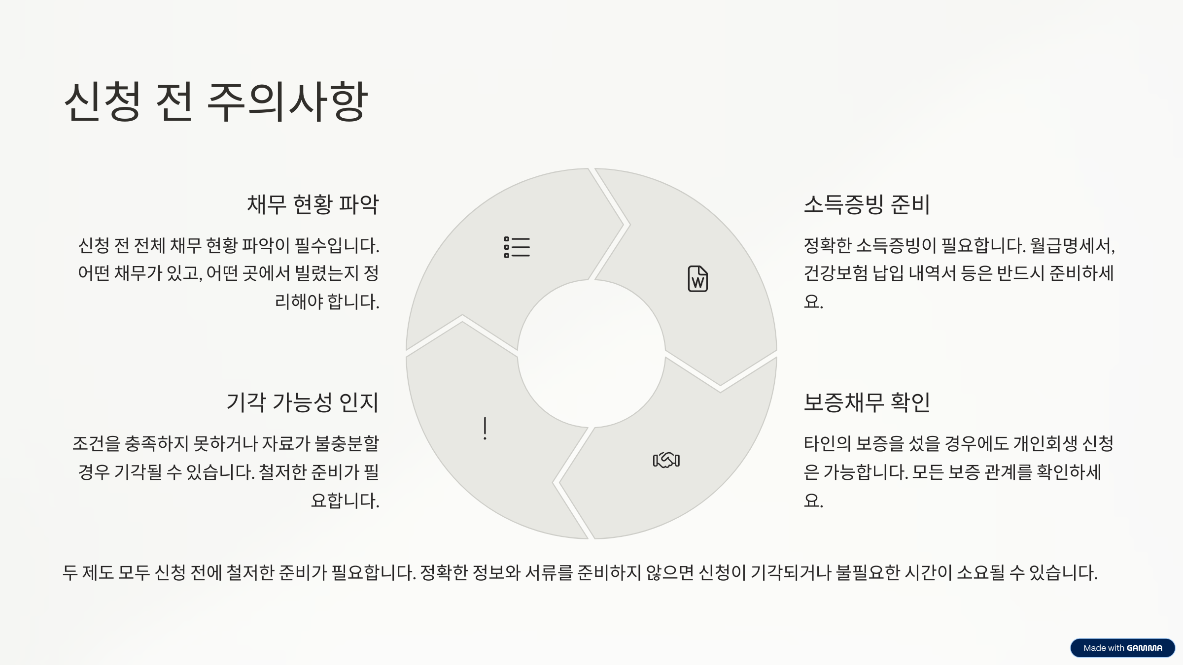 - 신청 전 전체 채무 현황 파악 필수